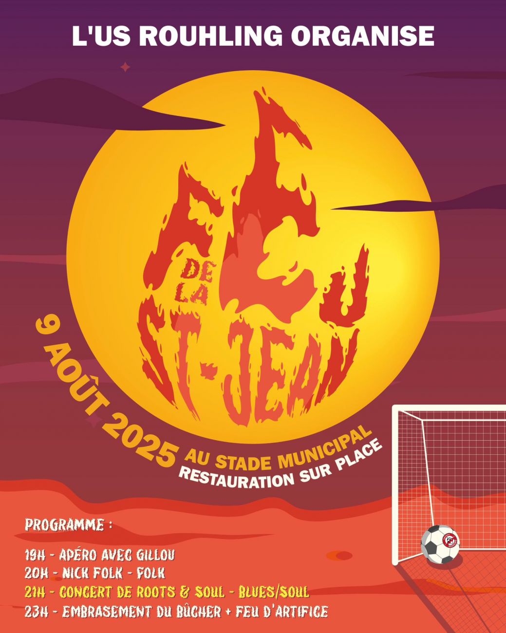 Le samedi au soir, l’union sportive de Rouhling organise son feu de la Saint-Jean au stade municipal de la commune. L’animation débutera dès 19h, avant que le bûcher soit allumé, aux alentours de 23h, suivi d’un feu d’artifice.