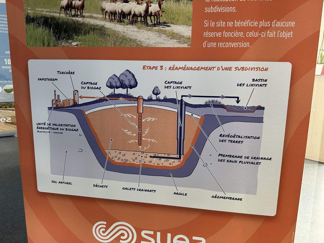 On y fait des trous dans la terre. On renforce l’argile par de la membrane, qui est comme un liner de piscine, complètement étanche, et on y met les déchets. Ça peut être sur des hauteurs de 15 ou de 20 mètres.