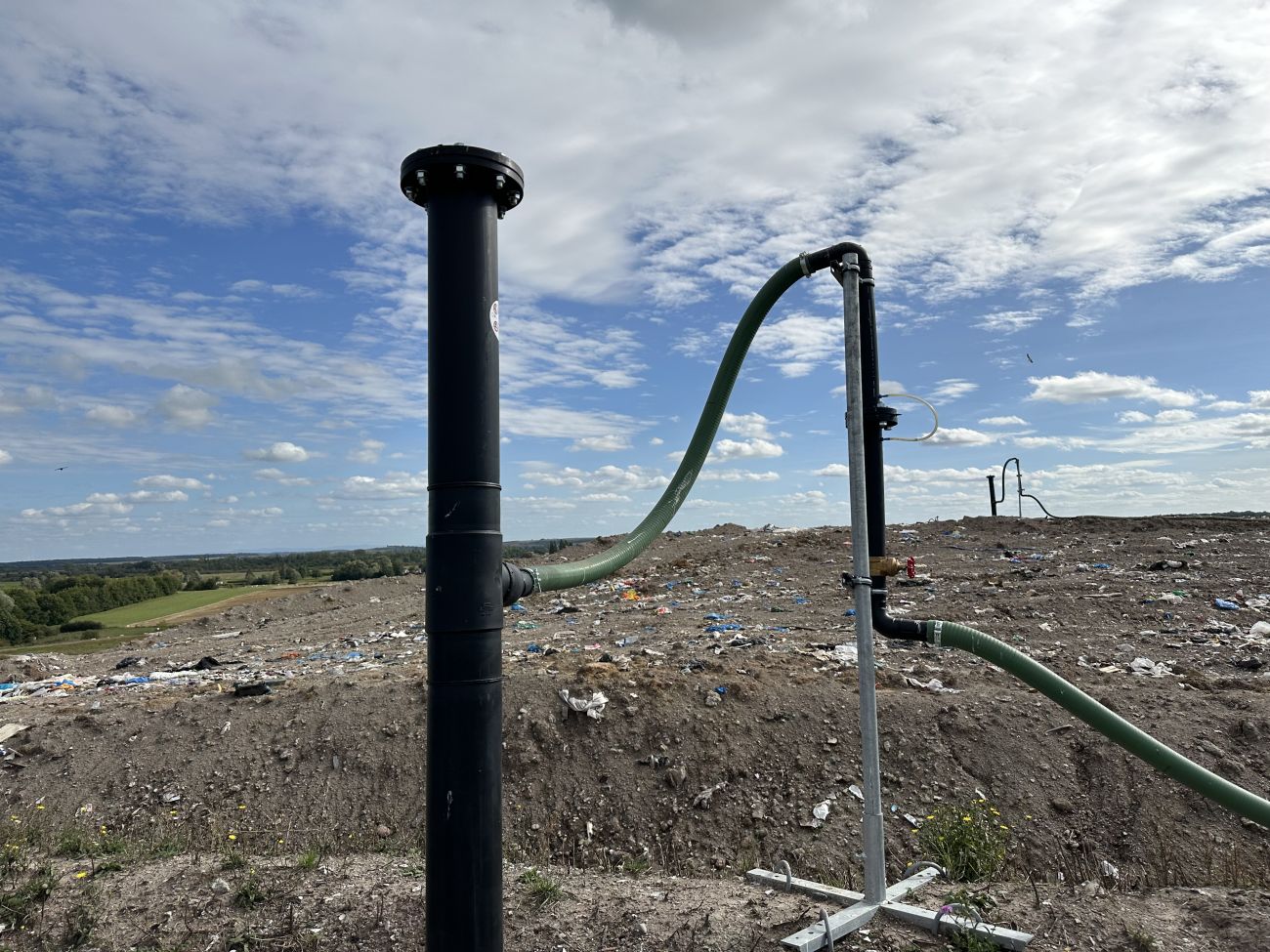 Les déchets sont ensuite recouverts avec la même membrane et des matériaux argileux pour étanchéifier la zone, qui va produire du biogaz avec la décomposition des déchets.