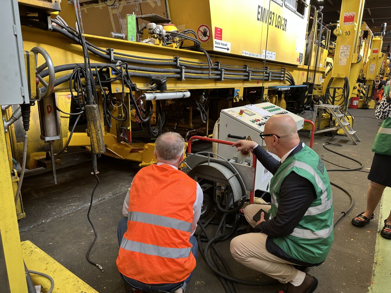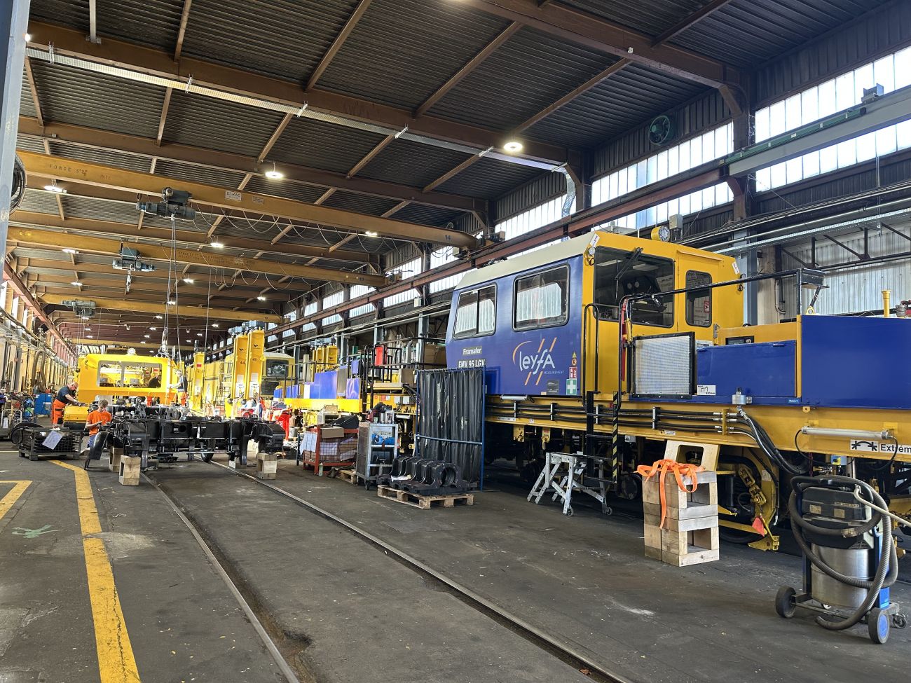 Ici, sont construites ces machines étudiées pour durer plus d’une trentaine d’années. Elles ressemblant à des locomotives mais servent à la construction et à l’entretien des voies ferrées. Jérémy Becker est le directeur technique.