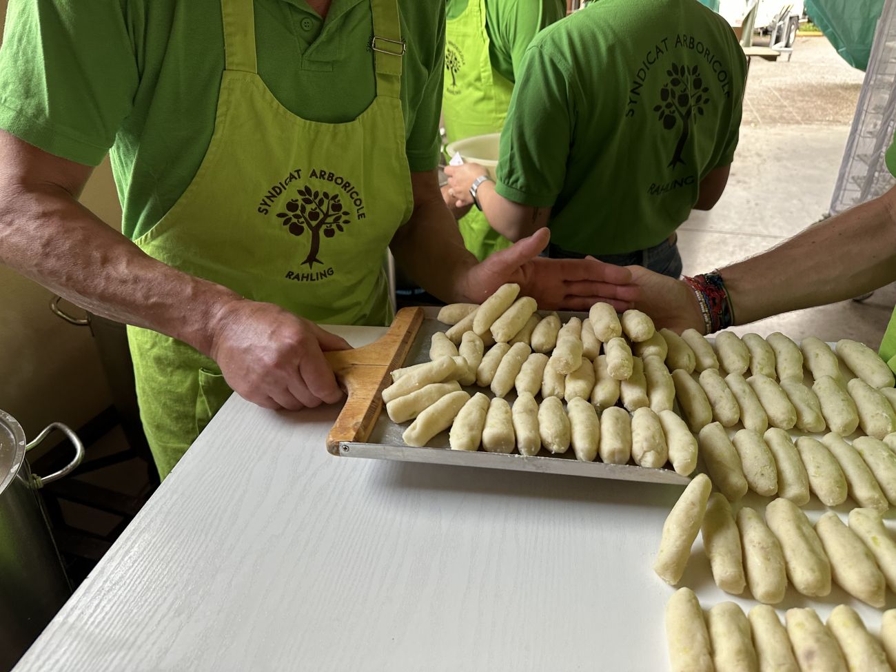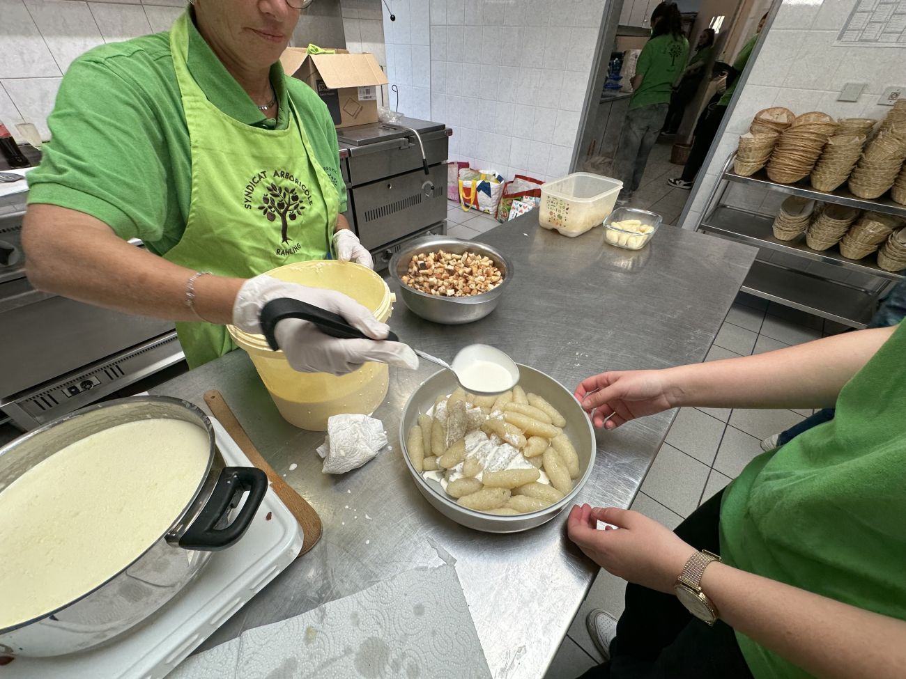 Ce dimanche 28 septembre, le Syndicat Arboricole de Rahling a organisé la 28e édition de la Sputznudelfecht à la salle polyvalente de la commune. Près de 18 300 sputznudel ont été confectionnés la veille. Pour la journée dominicale, les bénévoles se sont affairés en cuisine pour confectionner ce plat bien copieux.