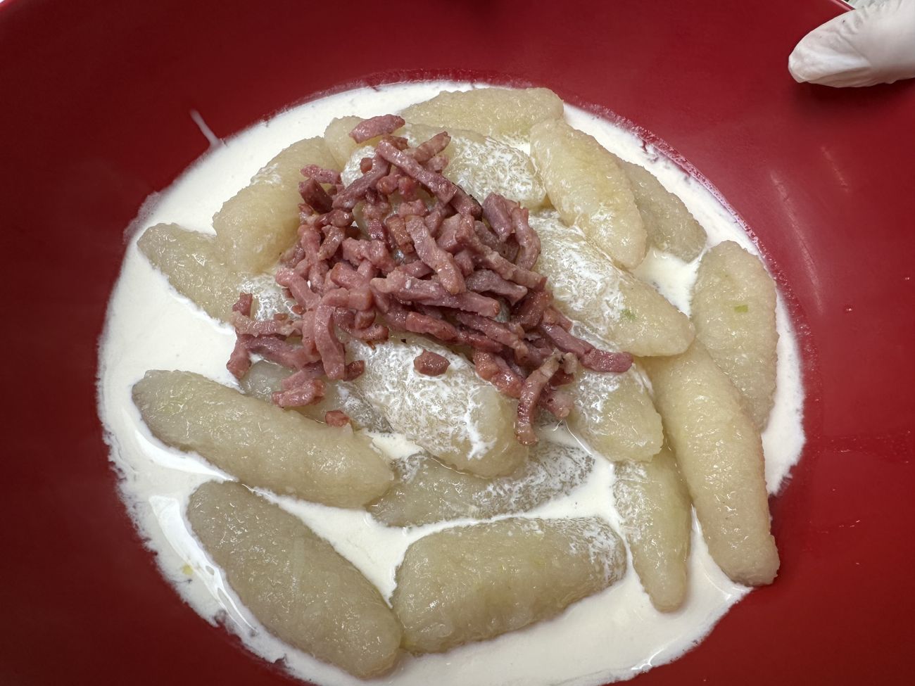 -Ça ressemble un peu à des Knepples. C’est un plat vraiment généreux et en goût ça ressemble un peu à ça, et on ressent le goût de la pomme de terre, mais ça ressemble à des Knepples.