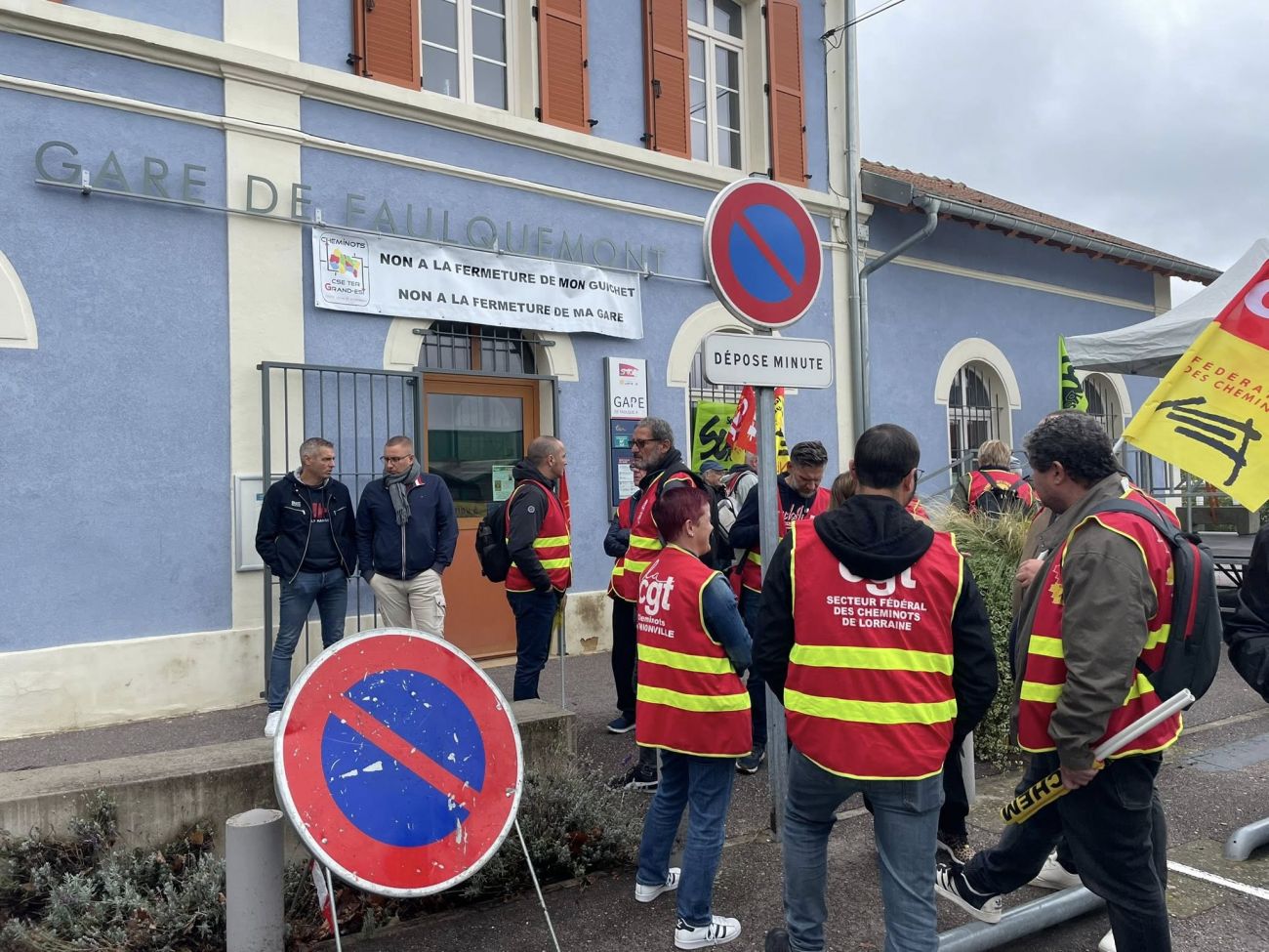 Vendredi, une mobilisation s’est tenue devant la gare de Faulquemont contre la fermeture du guichet. Syndicalistes, élus, et passagers sont venus soutenir l’agent titulaire qui devrait perdre son poste en 2026.
