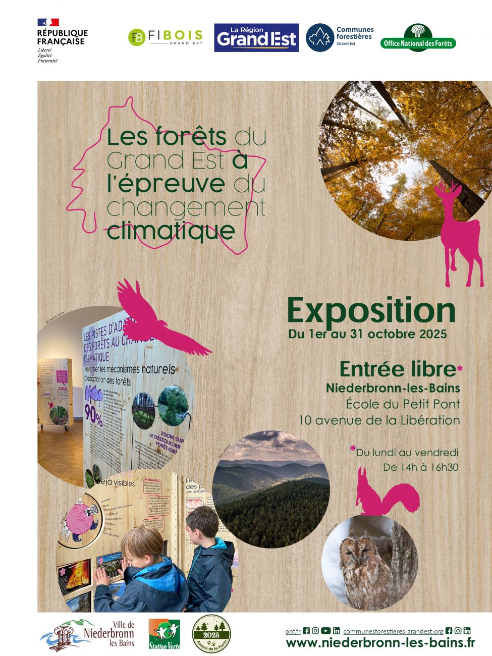 L'exposition « Les forêts du Grand Est à l'épreuve du changement climatique » est à découvrir à l'école du Petit Pont à Niederbronn-les-Bains du lundi au vendredi de 14h à 16h30 du 1er au 31 octobre.