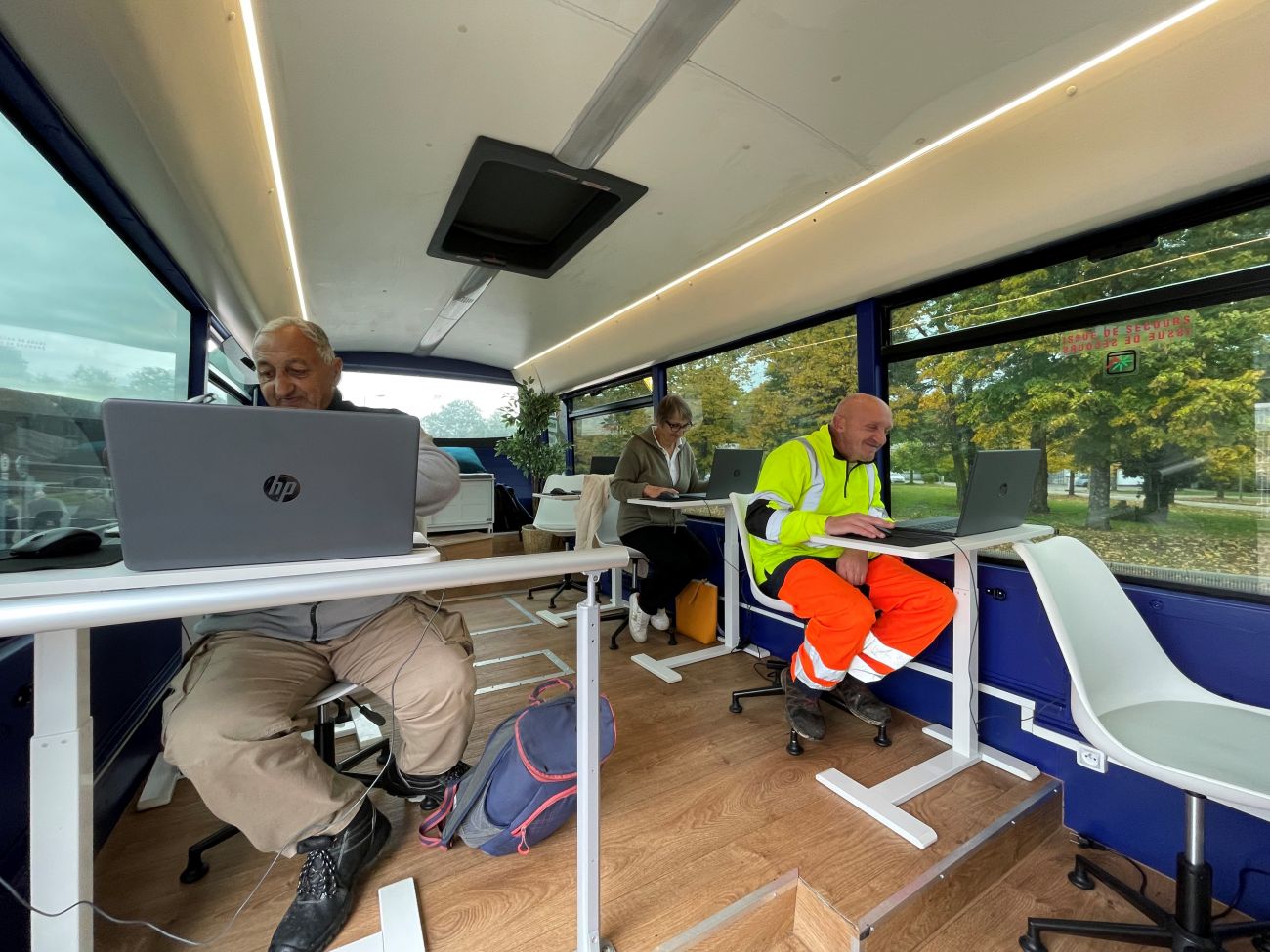700 personnes sont montées à bord de ce bus pour y être formées. Il y a deux publics distincts : les seniors de plus de 55 ans et toutes les personnes de plus de 18 ans, avec la thématique, cette fois-ci, du retour à la vie active.