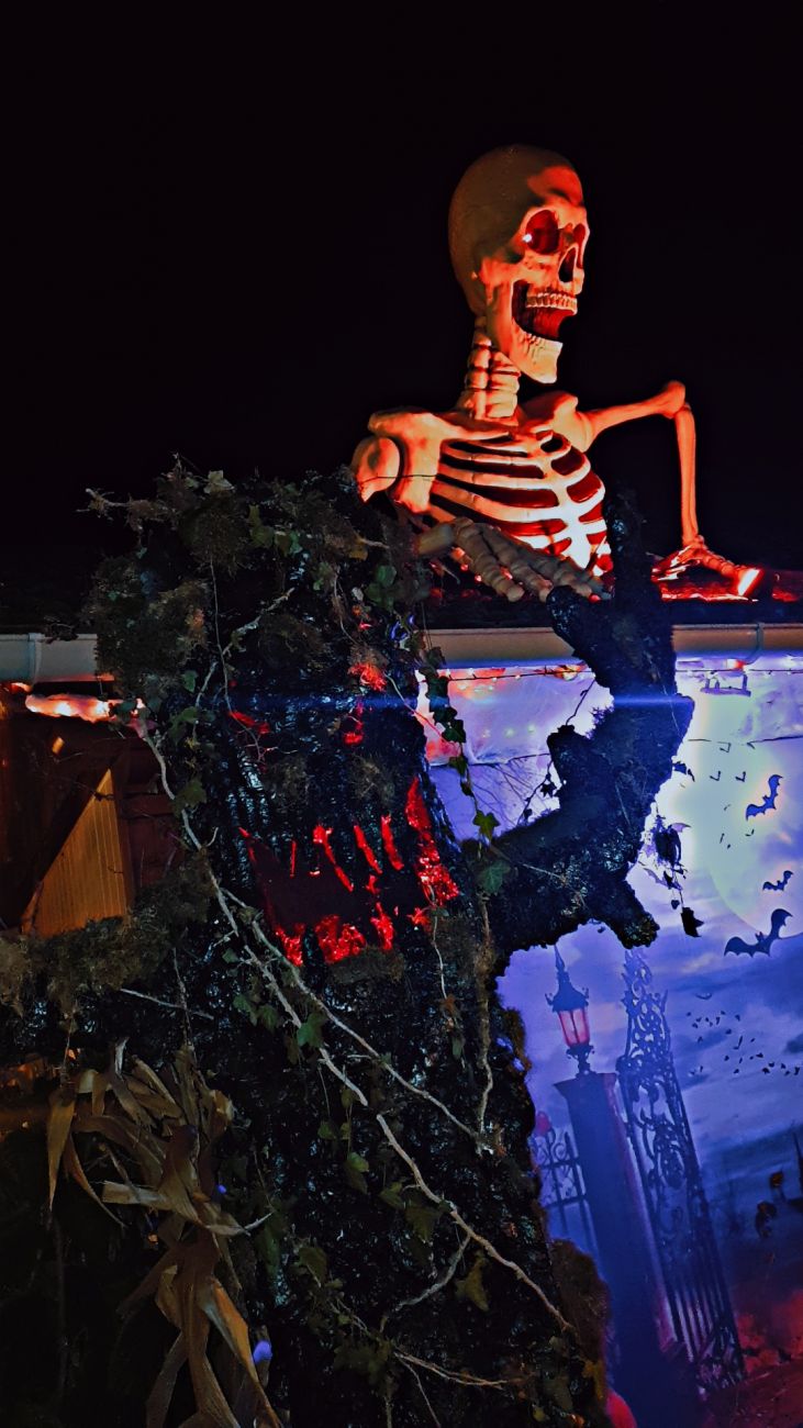La maison est illuminée tous les soirs à partir de 18h30 et jusqu'à 22h. Pour le 31 octobre, on fait une grande chasse aux bonbons en fin d'après-midi pour les enfants.