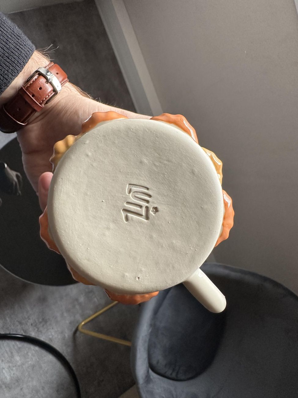 J’utilise la technique du moulage avec le plâtre, et de l’estampage aussi pour les reliefs qui viennent se coller sur les tasses. Ça permet d’avoir un rendu hyper lisse, que je recherche.