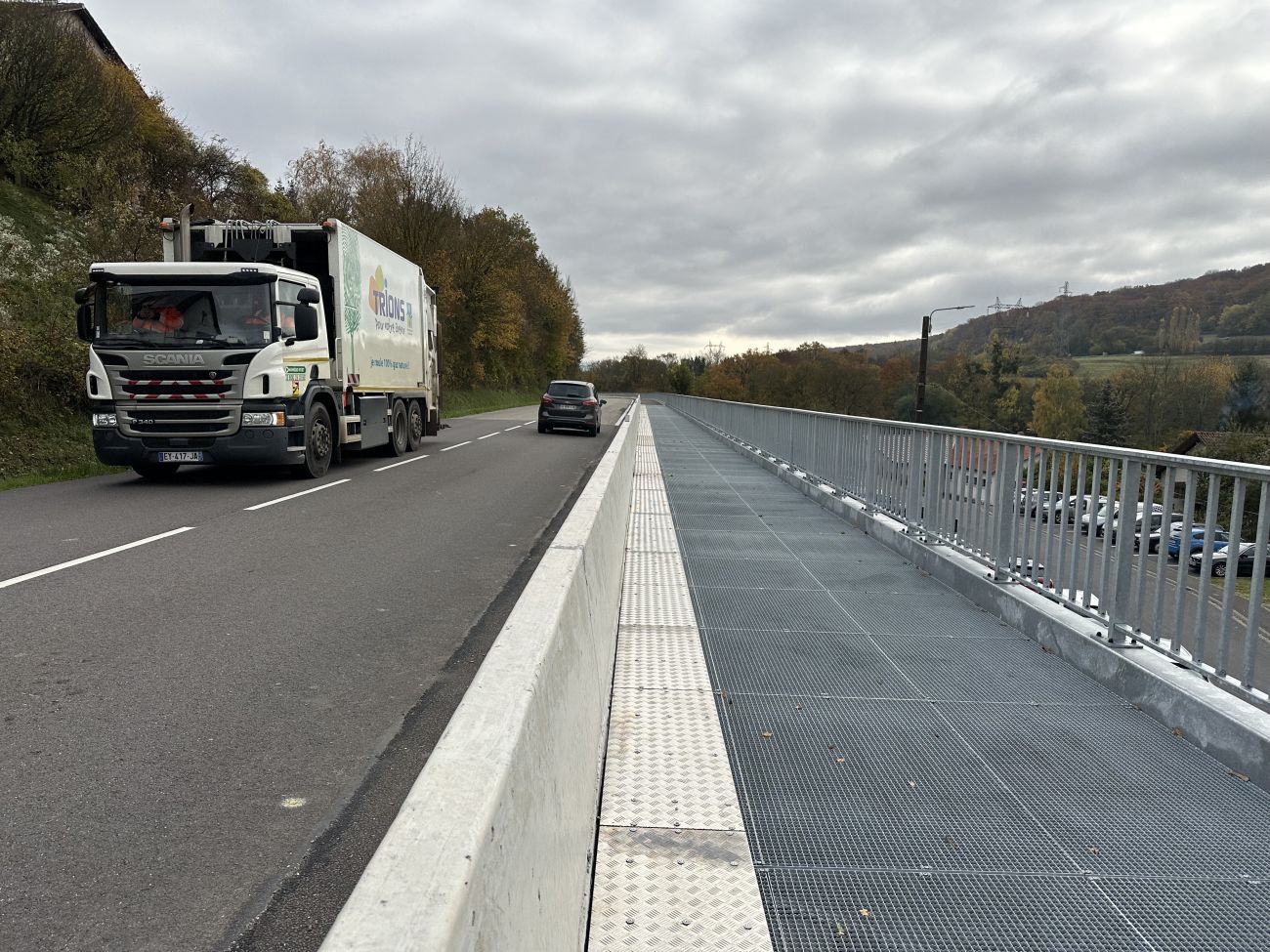 C’est une surlargeur en bitume et en caillebotis, séparée de la chaussée par un muret, qui a été créée sur la route reliant Lixing-lès-Rouhling et Grosbliederstroff. Laetitia Neu est la responsable du service voirie à la Communauté d’Agglomération Sarreguemines Confluences.