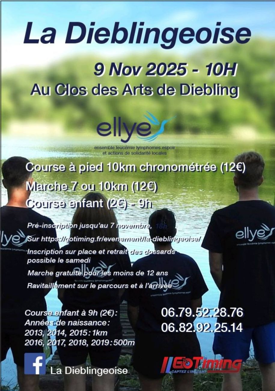 La Dieblingeoise a lieu ce dimanche à partir de 10h. Le rendez-vous est donné au Clos des Arts. Il y a une course de 10km, une course enfants, et une marche de 7 ou 10km selon les envies. Inscription possible encore ce samedi sur place.