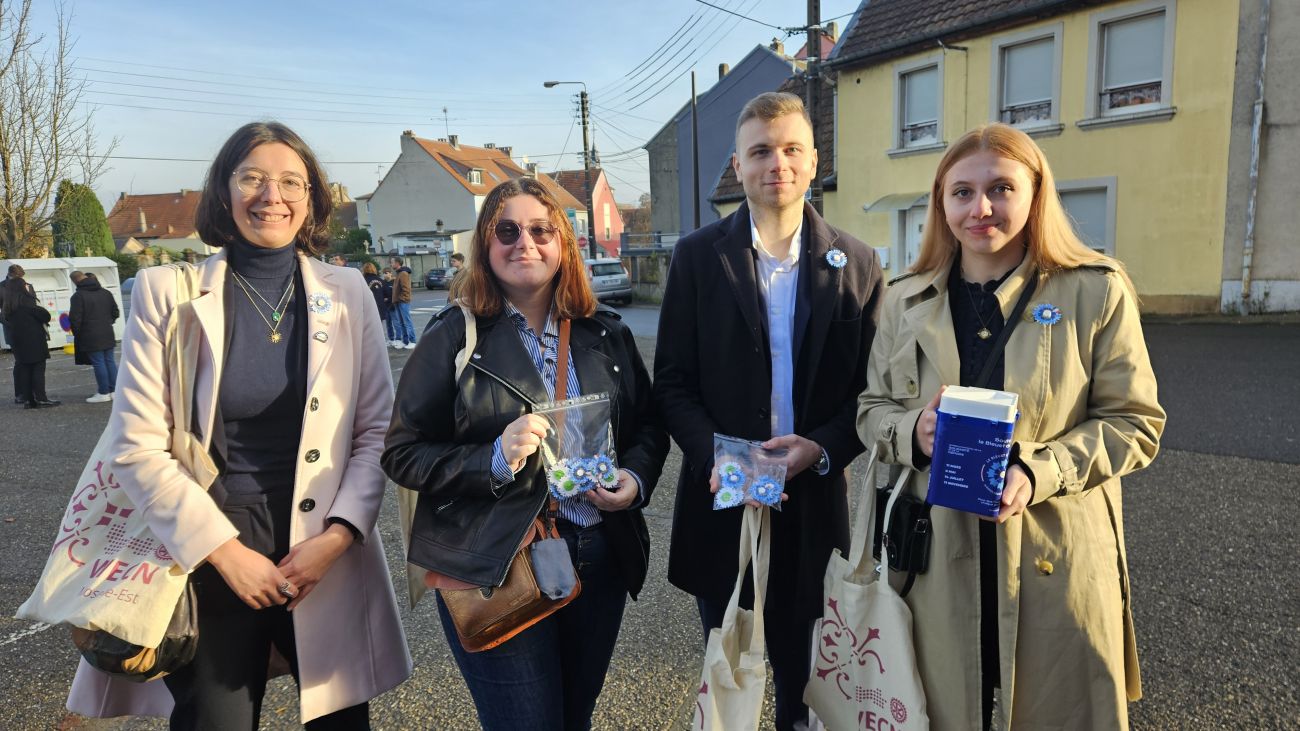 Avant le début des commémorations, quatre jeunes adultes, tote-bags et tirelires en main, passent dans les rangs. Lisa Bagur est la présidente du Rotaract de Moselle-Est, un club pour jeunes adultes entre 18 et 25 ans.