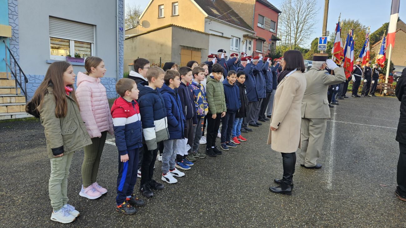 Pour clore la cérémonie, Pauline, Halim, Guilhem et tous les enfants de CM1/CM2 de l’école de Welferding entonnent en chœur la Marseillaise.
