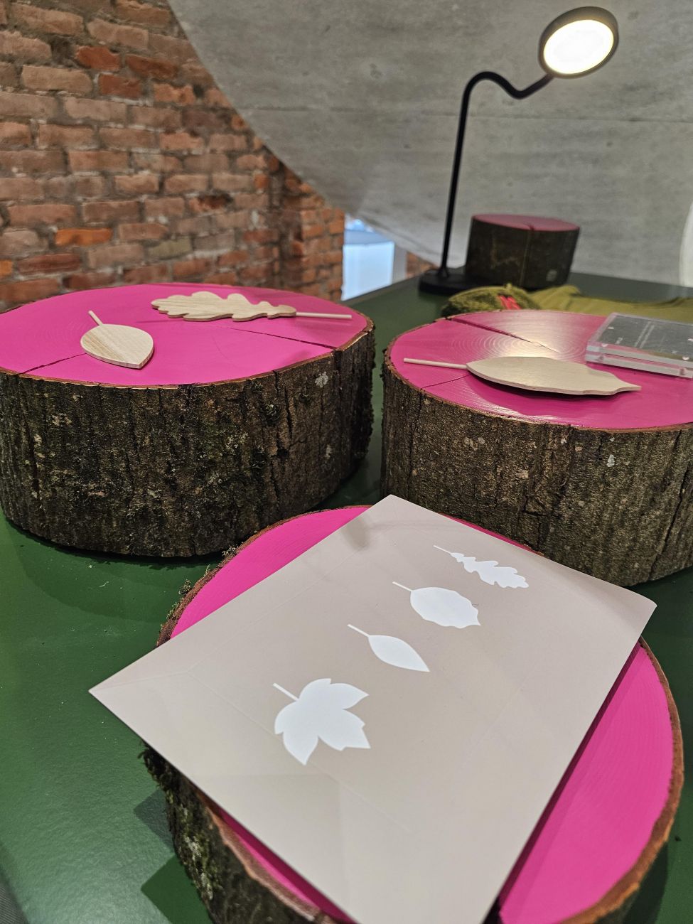 Il y a aussi des « Pampilles », ce sont 4 feuilles en bois qui représentent 4 essences issues des forêts du pays de Bitche (chêne, érable, hêtre et frêne). C'est décoratif, ludique et pédagogique. Ça peut être une décoration de table, une suspension, un marque page ou encore une boule de Noël.