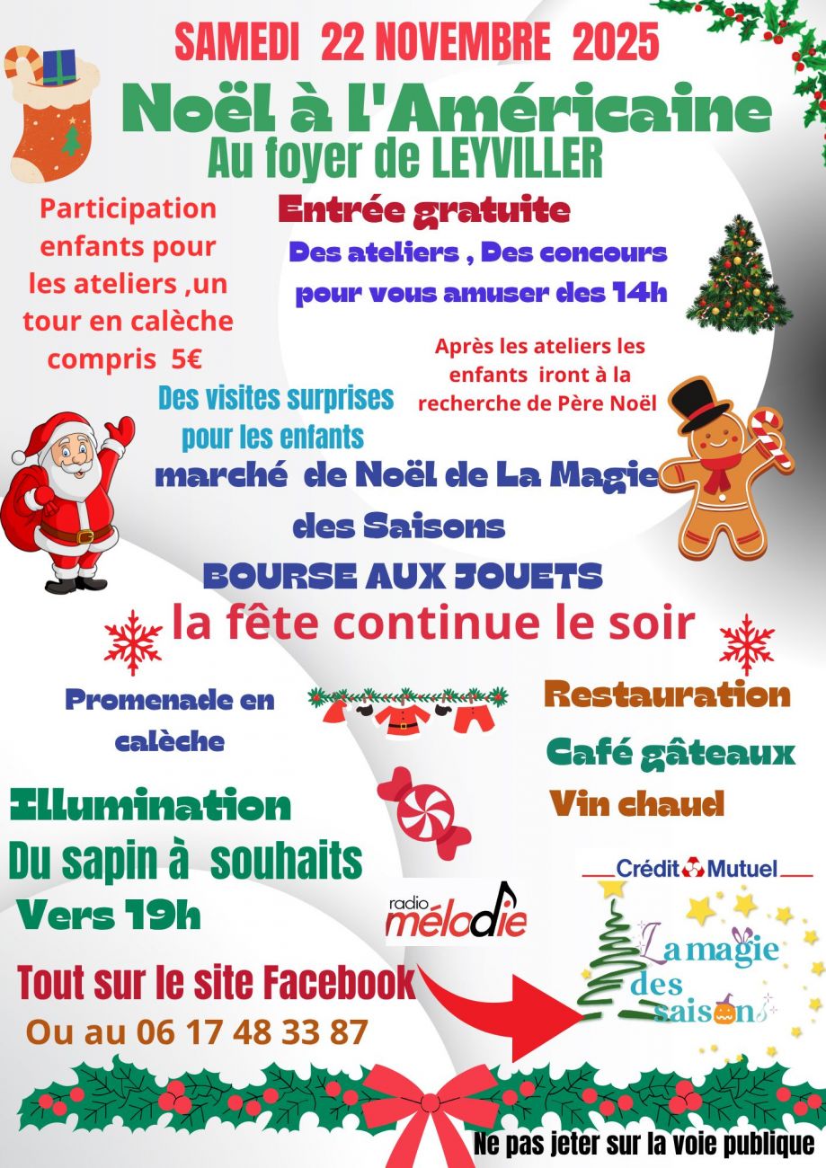 A Leyviller, samedi, on fête Noël à l’américaine. L'association intergénérationnelle La Magie des Saisons est à l’organisation de cet événement. Dès 14h et jusque tard dans la soirée, les animations vont s’enchainer à la salle polyvalente. Brigitte Malnoury, la présidente nous en parle.