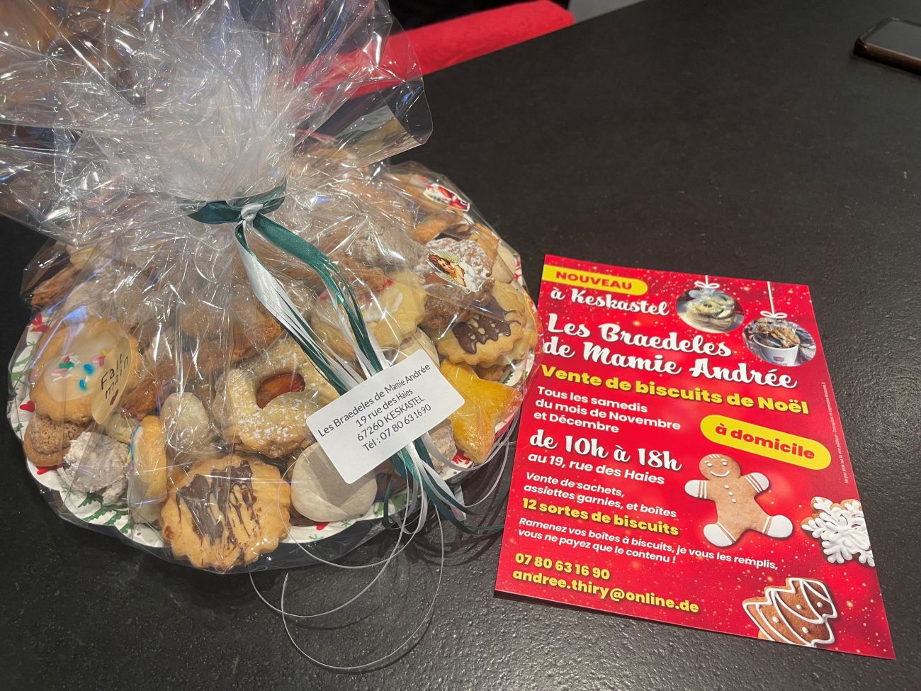 Mamie Andrée sera encore présente les 14 et 15 décembre au marché de Noël de Diemeringen, ainsi que le 19 décembre aux festivités de Noël de l'école de Rech. Vous pouvez aussi acheter ses biscuits chez elle chaque samedi du mois de décembre de 10h à 18h au 19, rue des Haies à Keskastel. Le numéro de téléphone : 07.80.63.16.90