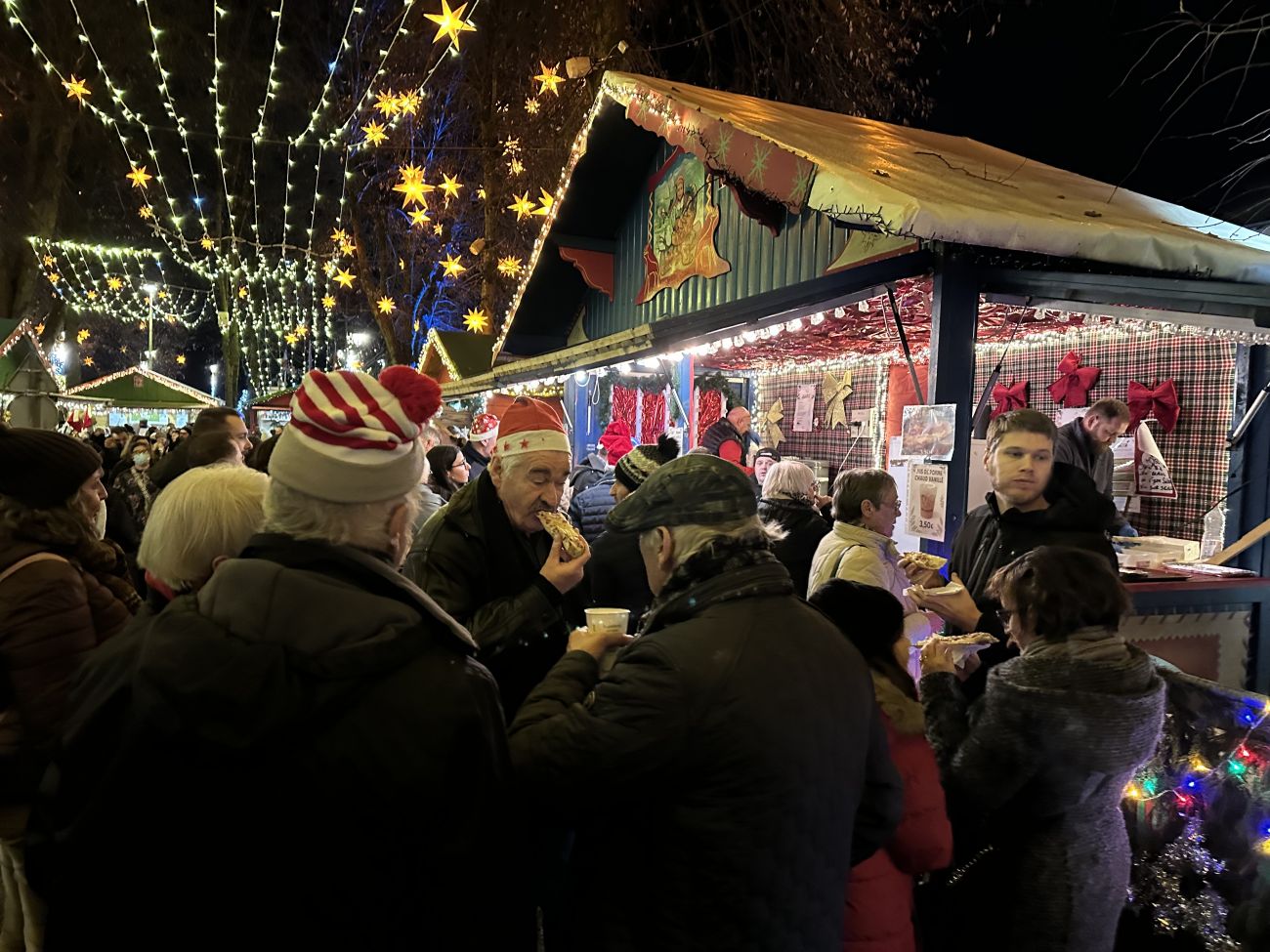 Les décorations chaleureuses sont présentes partout sur ce marché qui s’étend même derrière la mairie. Bertrand a sa petite préférence.