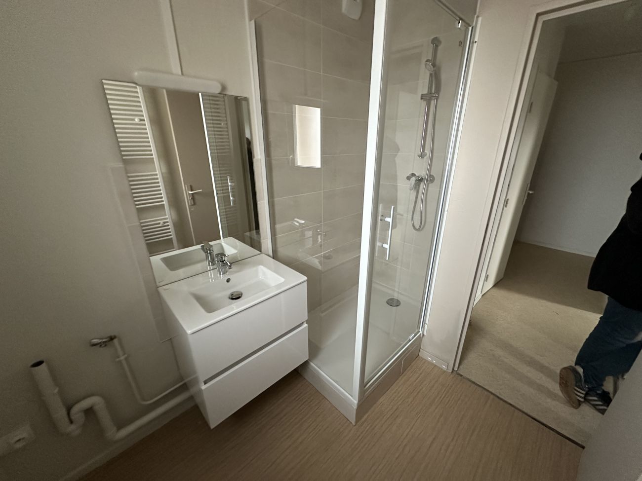 On change les équipements sanitaires, on refait la peinture et les sols. Dans la salle de bain, on a changé le lavabo, on a remplacé la baignoire par une douche. Dans l’intégralité du logement, on refait aussi la ventilation.