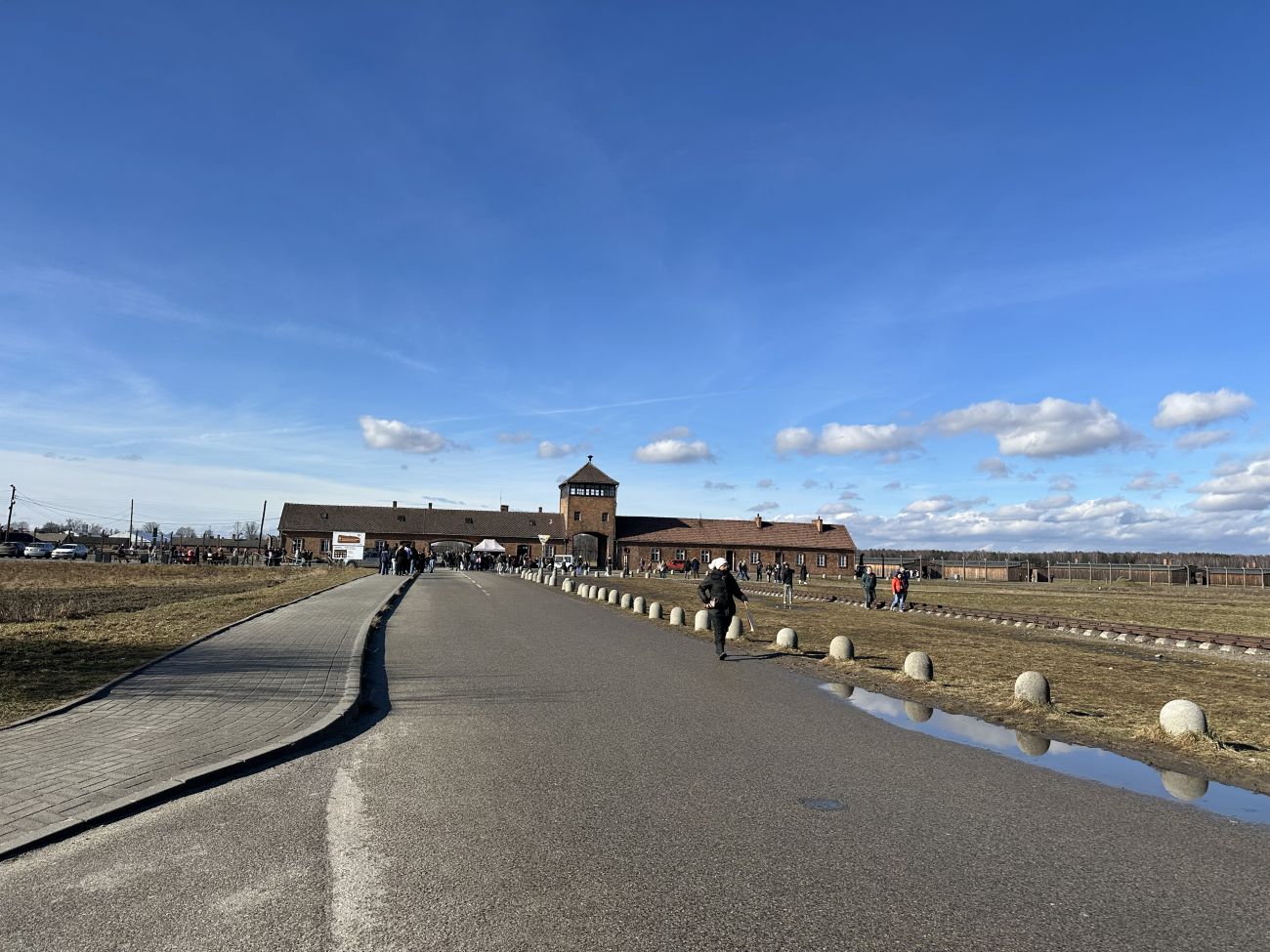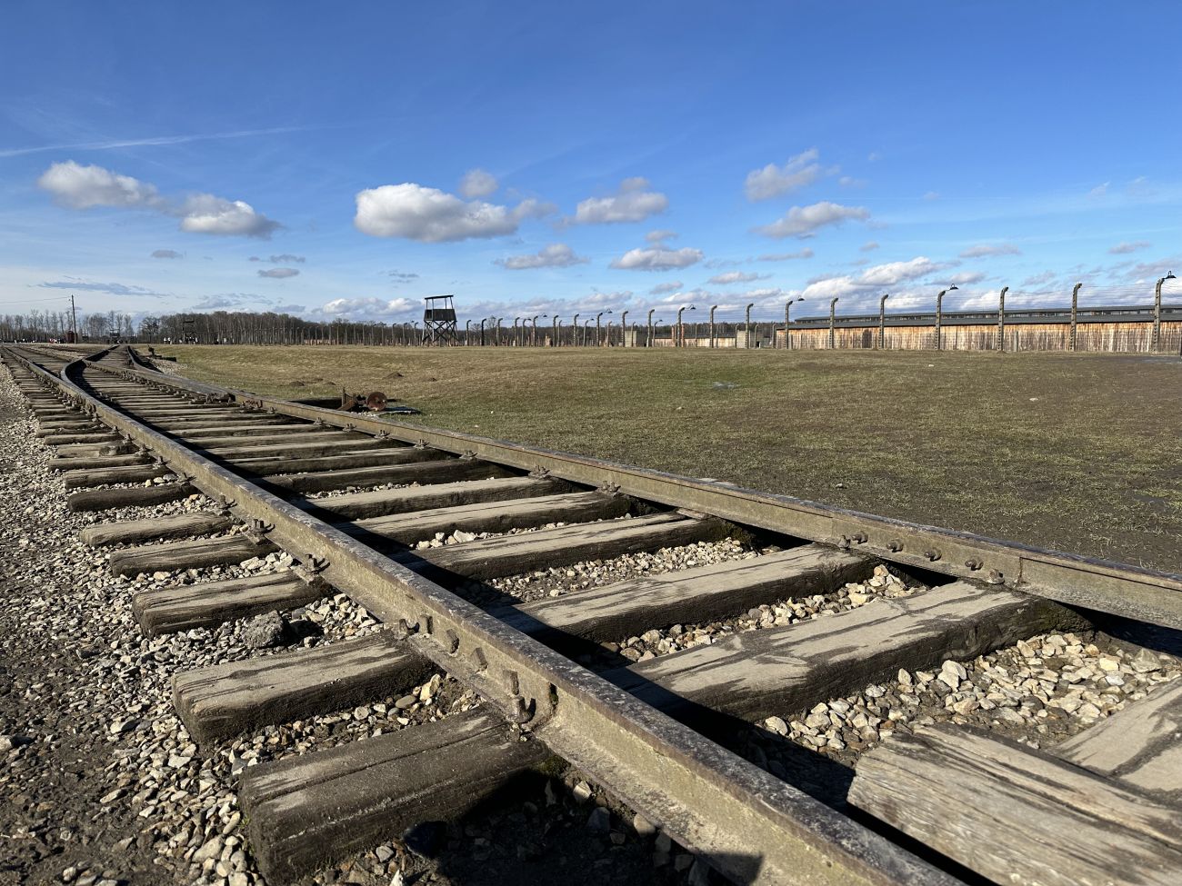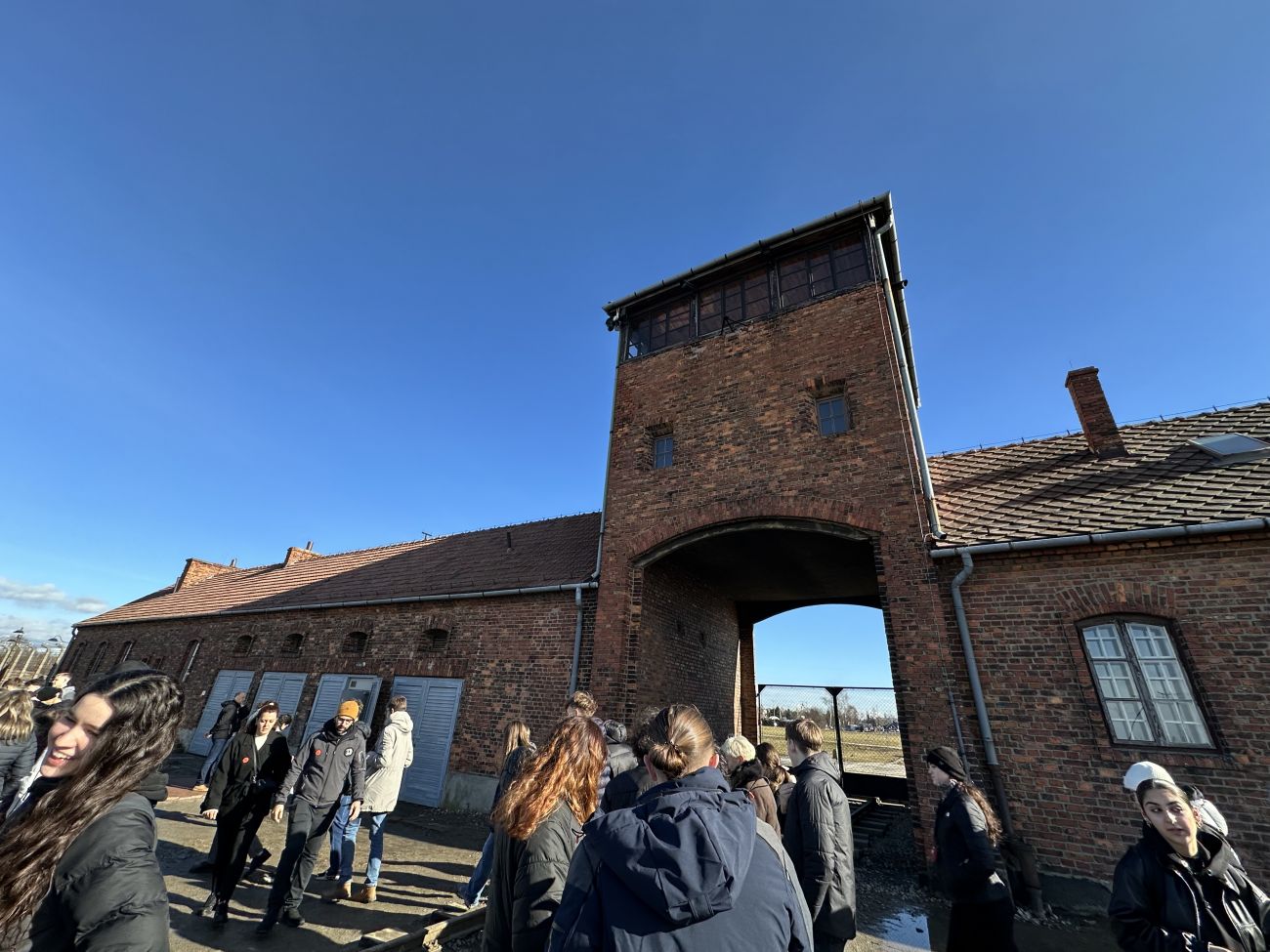 Nous entrons sur ce site de 175 hectares par le tristement célèbre portail du camp avec sa tour surplombant les rails. Un sentiment étrange frappe Lilou.