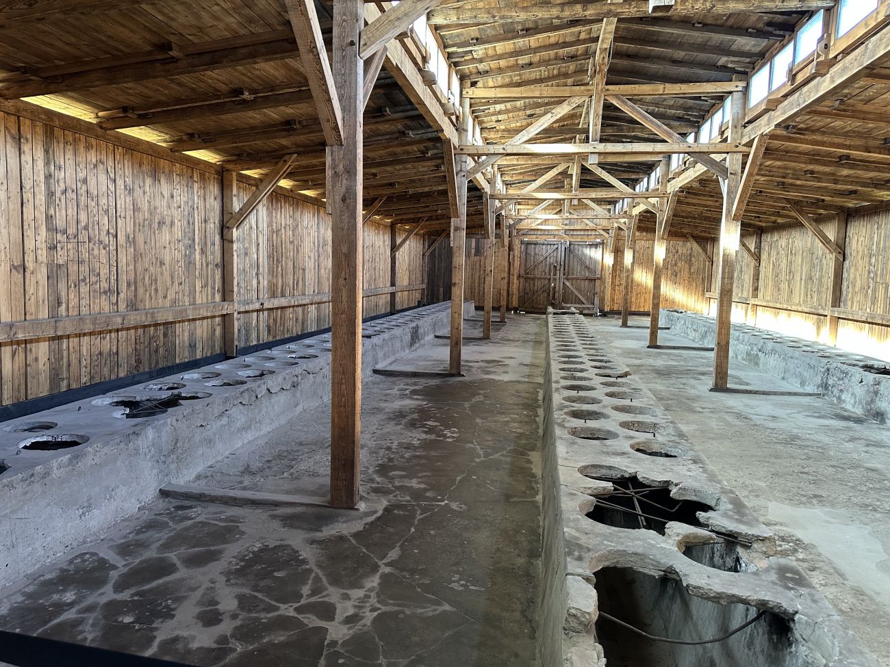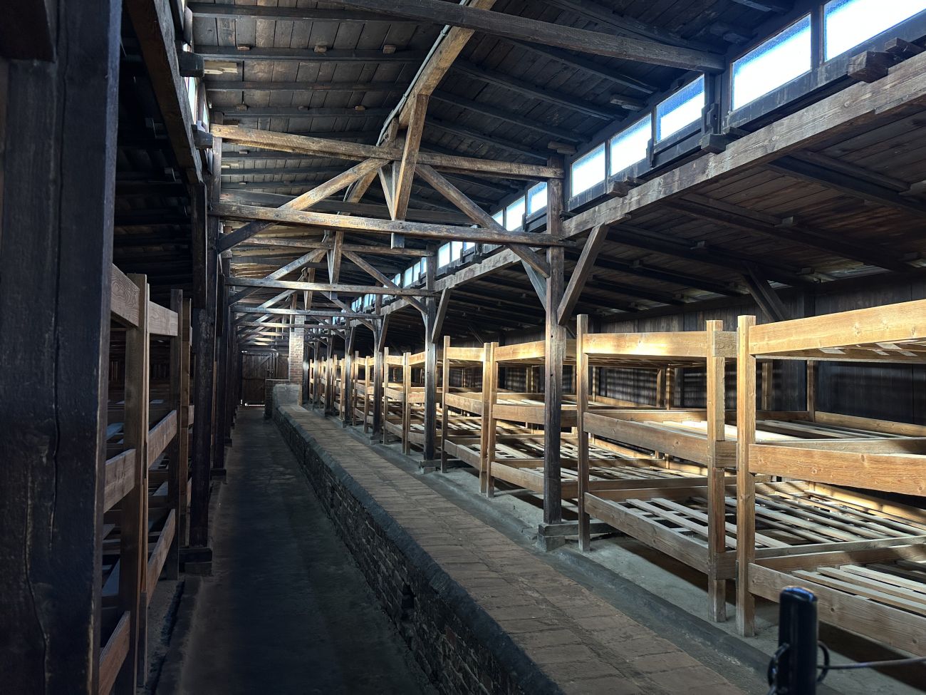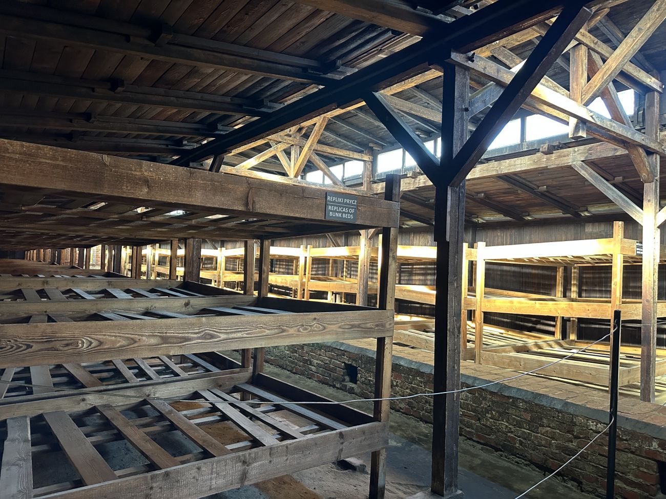 Ici, à Birkenau, il pouvait y avoir jusqu’à 500 personnes, en moyenne, dans une baraque comme ça. Sur chaque niveau que vous voyez, sur un lit, il y avait trois ou quatre personnes par niveau, et sans compter les personnes au sol, qui trouvaient une place là où elles pouvaient.