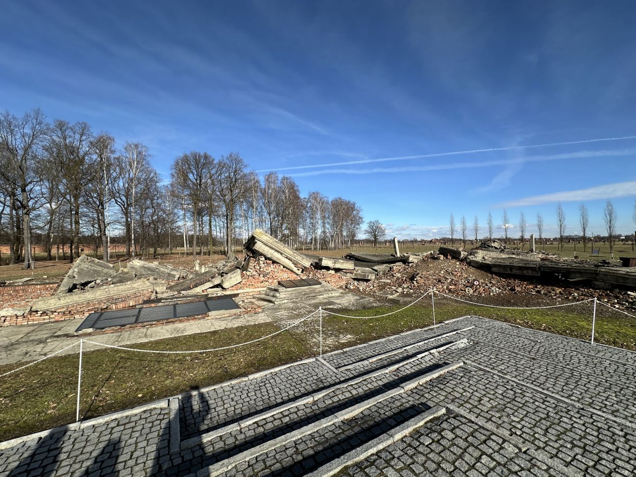 À votre gauche et à votre droite, les ruines qu’on voit, sont les ruines des crématoriums 2 et 3. Ce sont les plus grands crématoires d’Auschwitz-Birkenau.