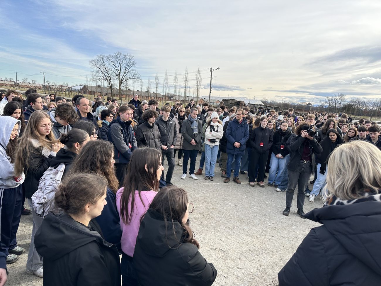 Avec l’aide de photos d’archives et de témoignages nous avons pu prendre conscience de la cruauté qui régnait ici, jusqu'à la libération du camp en janvier 1945. Au terme de cette visite bouleversante, une minute de silence a été observée.