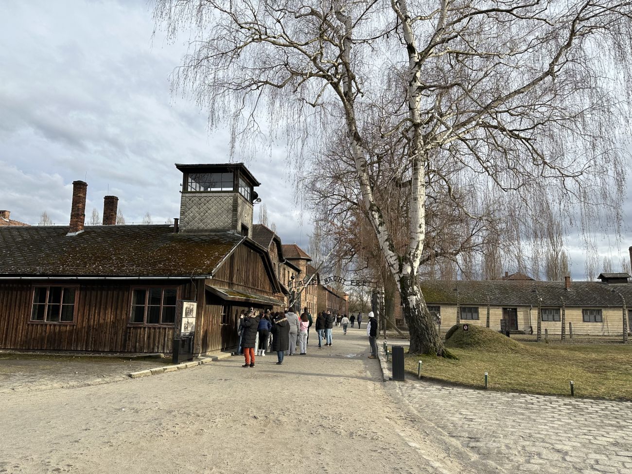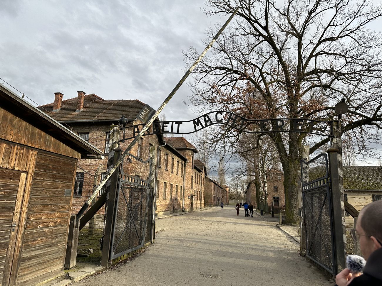 Sur le chemin qui nous emmène vers le camp souche, les noms de toutes les victimes sont cités. Nous pénétrons, ensuite, sur ce site au lourd passé en franchissant le portail tristement célèbre.