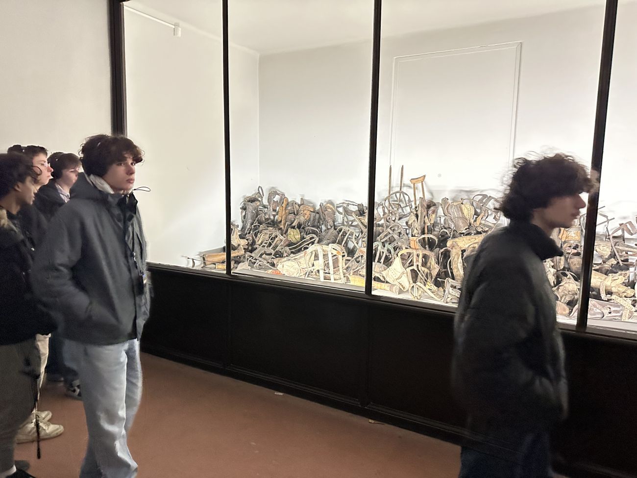Dans le Bloc 5, le choc s’empare instantanément des lycéens qui prennent conscience des crimes nazis, avec les monticules d’effets personnels exposés et détaillés par notre guide Kévin Magnin.