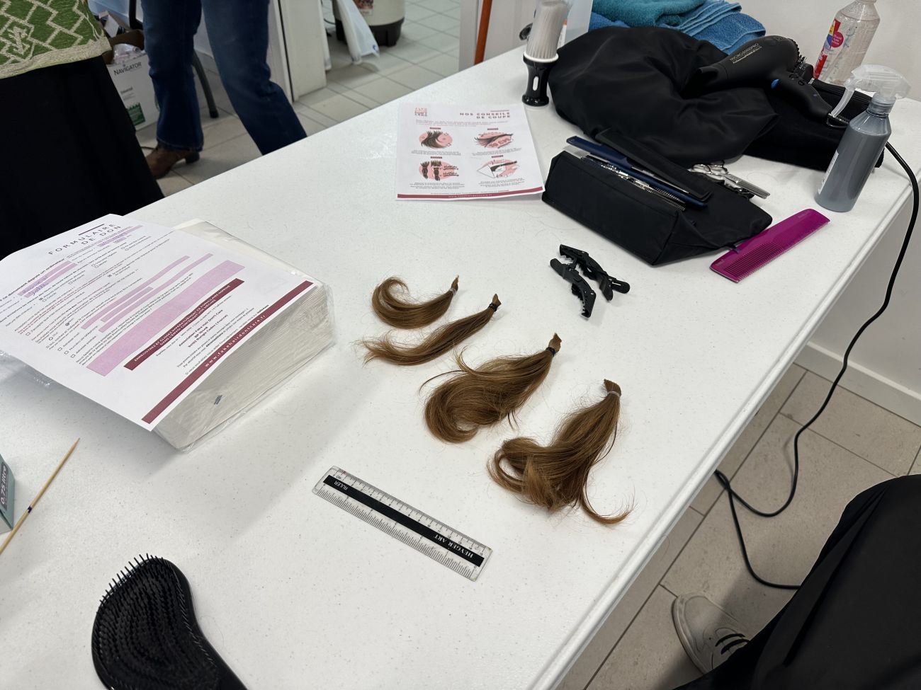 Coiffeuse à la retraite, Claudine s’occupe de réaliser les coupes pour récolter un maximum de longueurs.