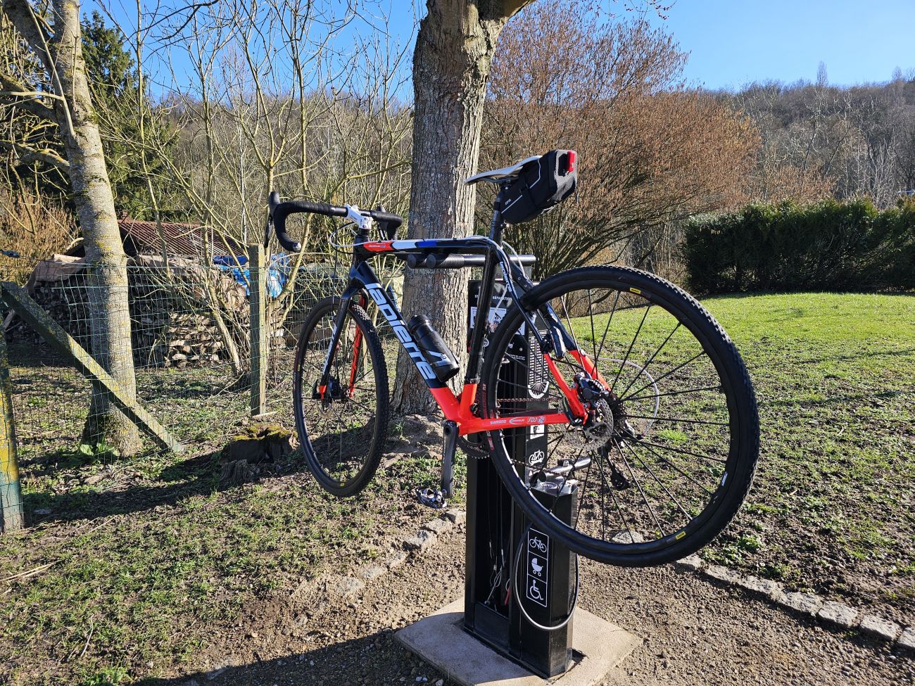 Cette idée, elle m’est venue, déjà parce qu’il y avait une sollicitation des personnes qui passent en vélo à Wittring. Il y a énormément de personnes qui font ce qu’on appelle le vélotaf donc qui vont au travail en vélo. Il y a énormément de personnes aussi qui font des longues distances, qui passent par Wittring et qui ont besoin de réajuster leur pression des pneus, avec les changements de terrain entre la forêt par exemple et la piste cyclable. Donc ça permet, effectivement, de rouler plus libre, et de se dire qu’en passant par Wittring, on sait qu’il y aura la possibilité de faire la gestion des pneus.