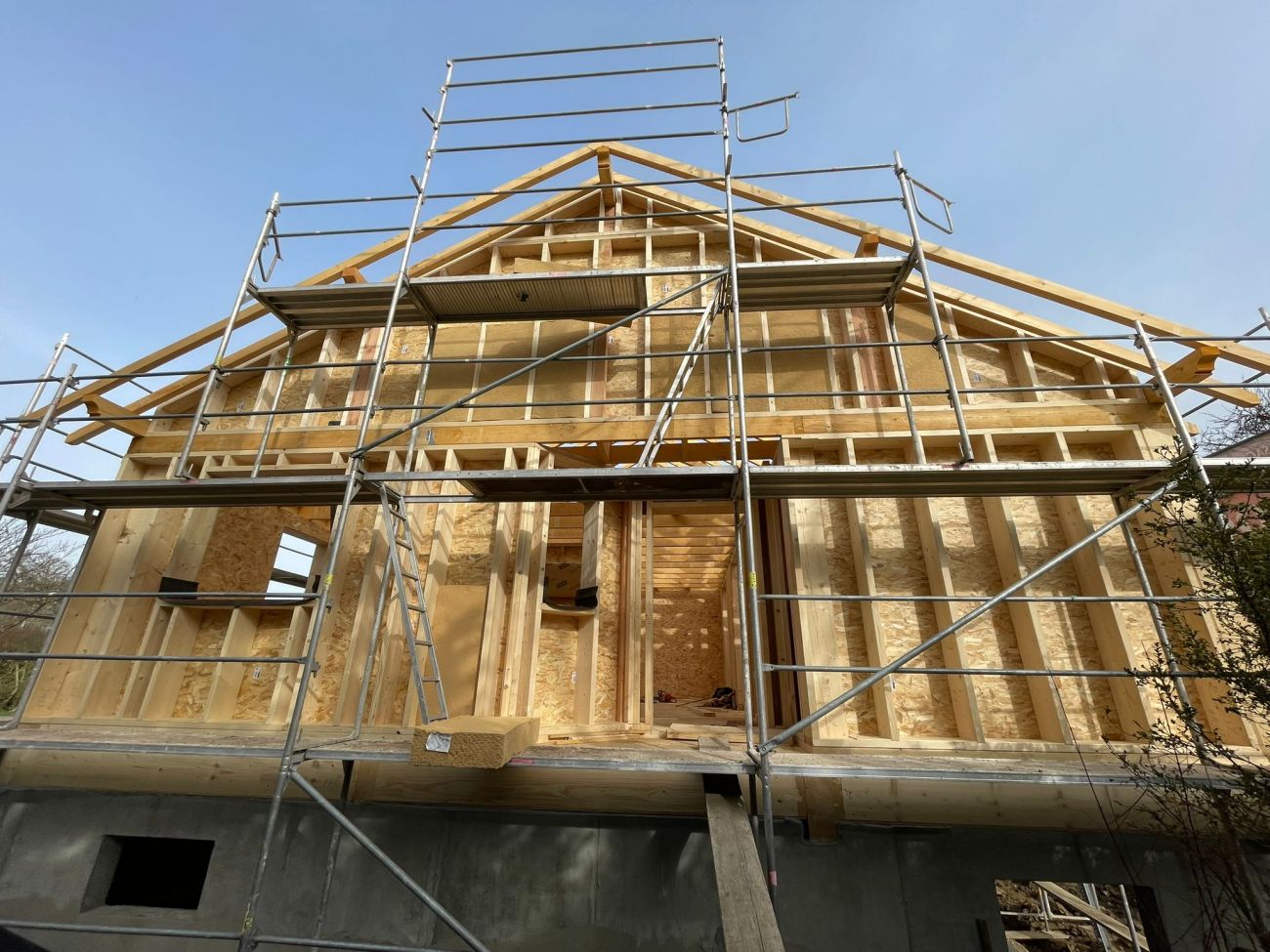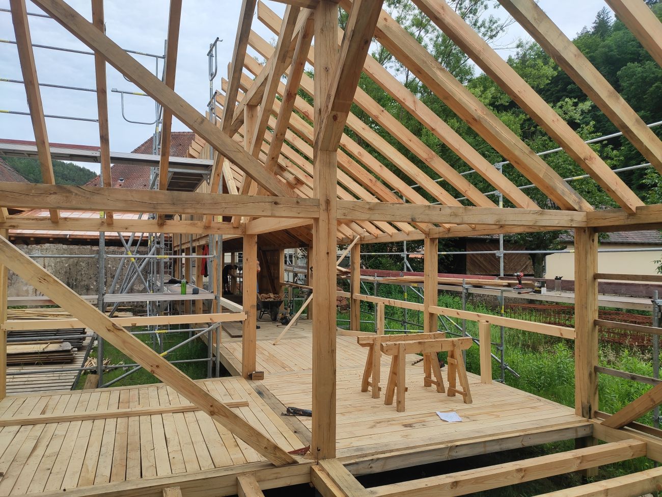 On fabrique tout, de A à Z, de la base, jusqu’en haut, en termes structurel. On fabrique la dalle du sol, on fabrique les murs, on fabrique le solivage qui va tenir le plafond, et on fabrique la charpente, évidemment. On a pas mal de cordes à notre arc.