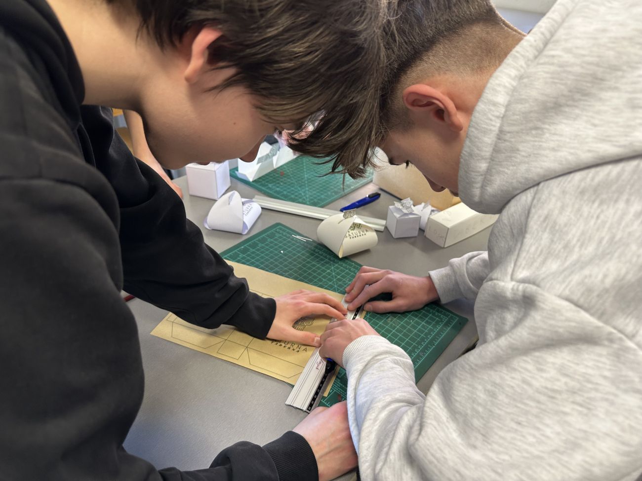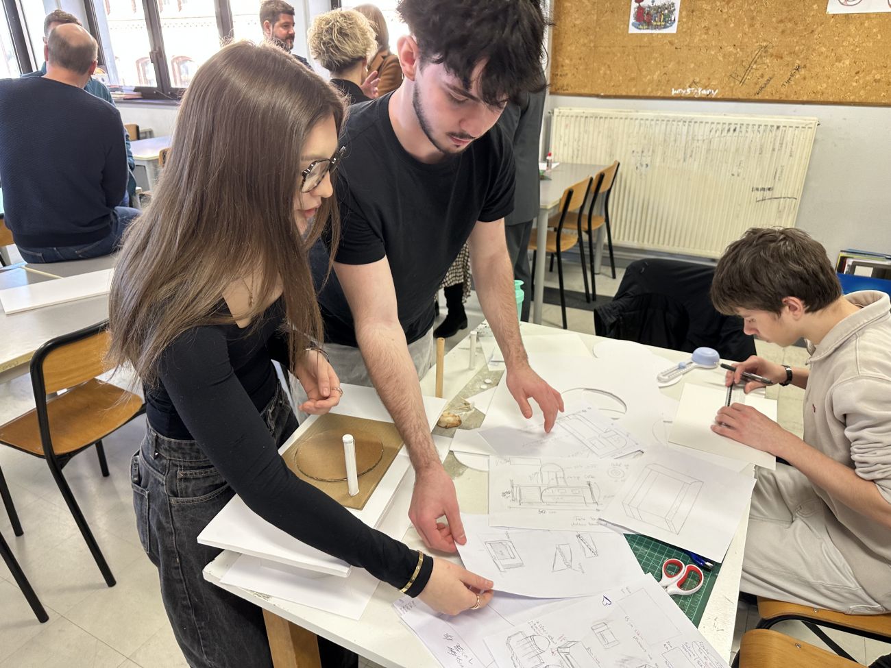 Les élèves imaginent ces produits de bout en bout. Enzo et Léona travaillent aussi sur des créations inspirées des arts de la table.