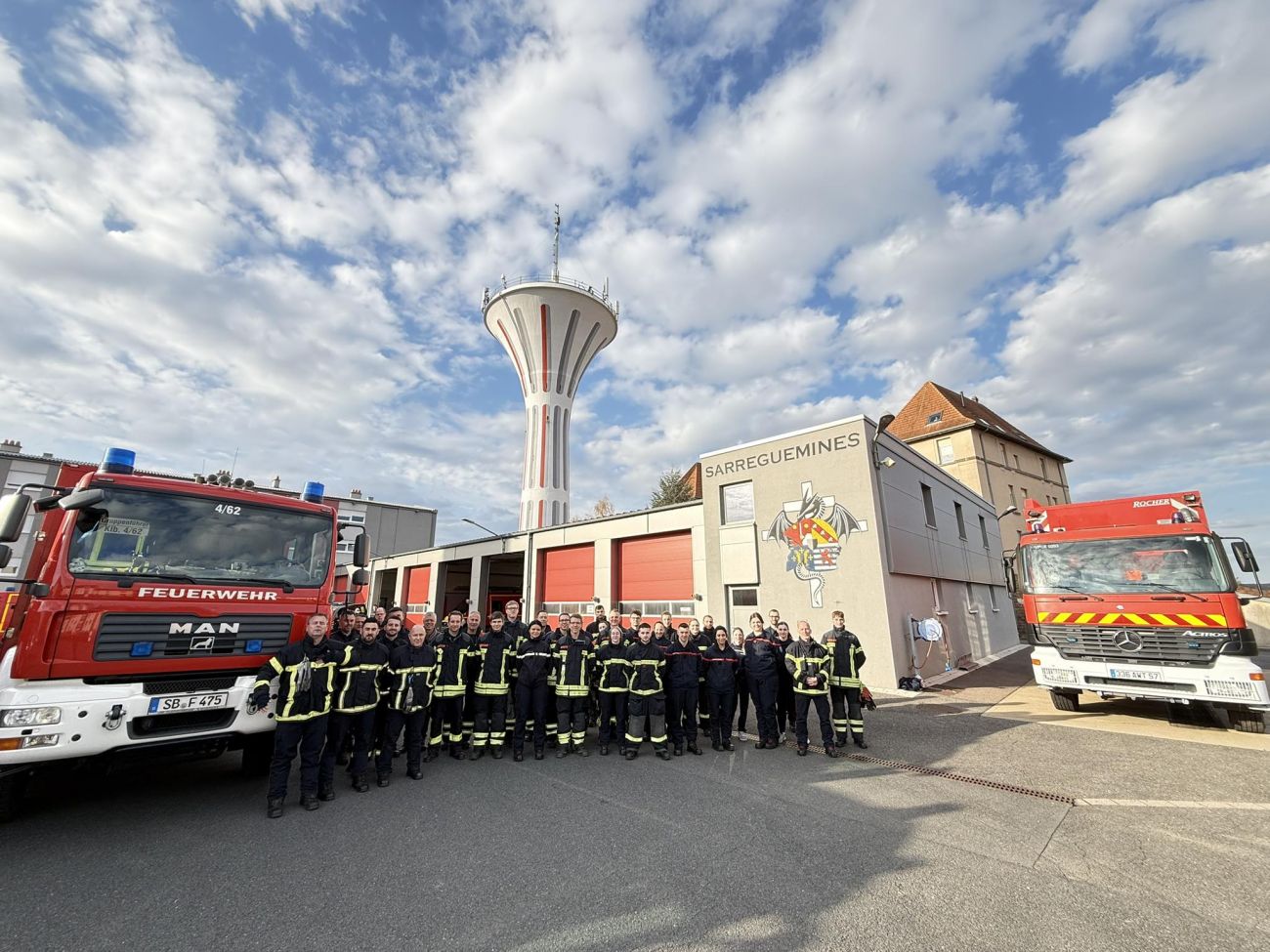Les pompiers de Sarreguemines ont organisé un exercice jeudi 2 avril avec des collègues mosellans et allemands. Dans un immeuble sarregueminois situé rue de l’école, 30 pompiers français de Sarreguemines et Wiesviller et 12 allemands de Kleinblittersdorf, ont dû agir.
