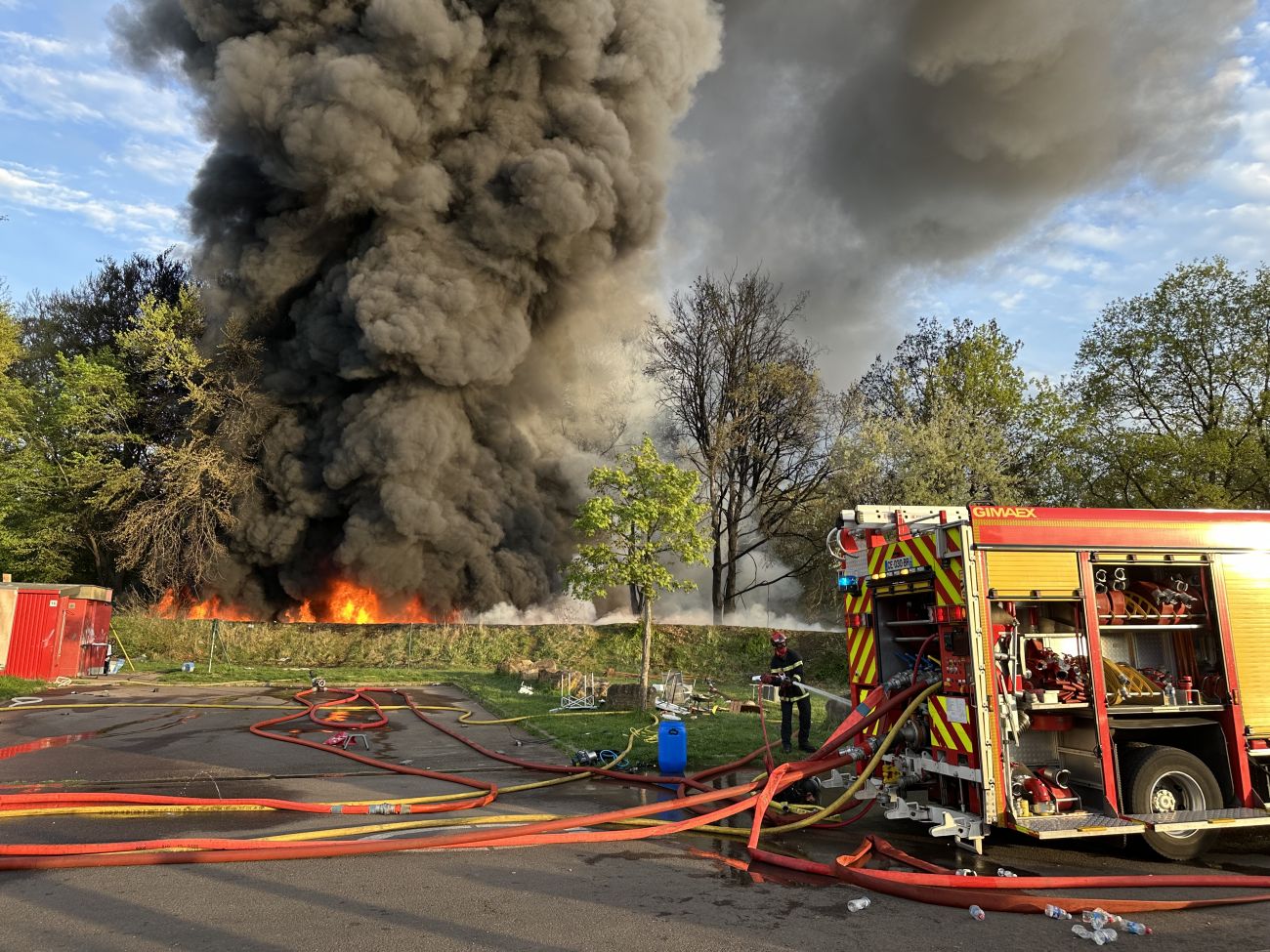 Un important panache de fumée noire s'est dégagé ce samedi après-midi, près de la déchetterie de Stiring-Wendel. Des centaines de pneus et de la végétation ont nourri le foyer qui a pu être maîtrisé par les sapeurs-pompiers mobilisés en nombre.