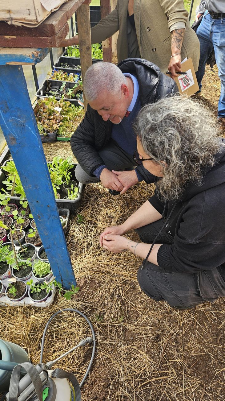 Tout autour du bâtiment, des espaces cultivés, des serres, sont en train d’être aménagés par les 14 salariés du chantier d’insertion professionnelle pour faire pousser des fruits et des légumes.