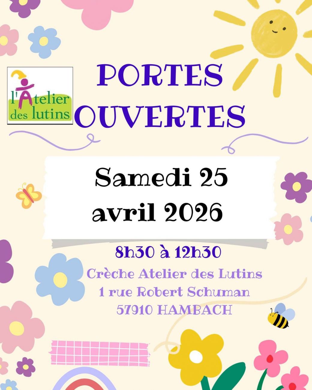 Découvrez ce samedi les portes ouvertes de l'Atelier des Lutins à Hambach de 8h30 à 12h30. Au programme, animations pour les enfants, visite de la structure, rencontre avec les professionnelles de la petite enfance et petit-déjeuner convivial.