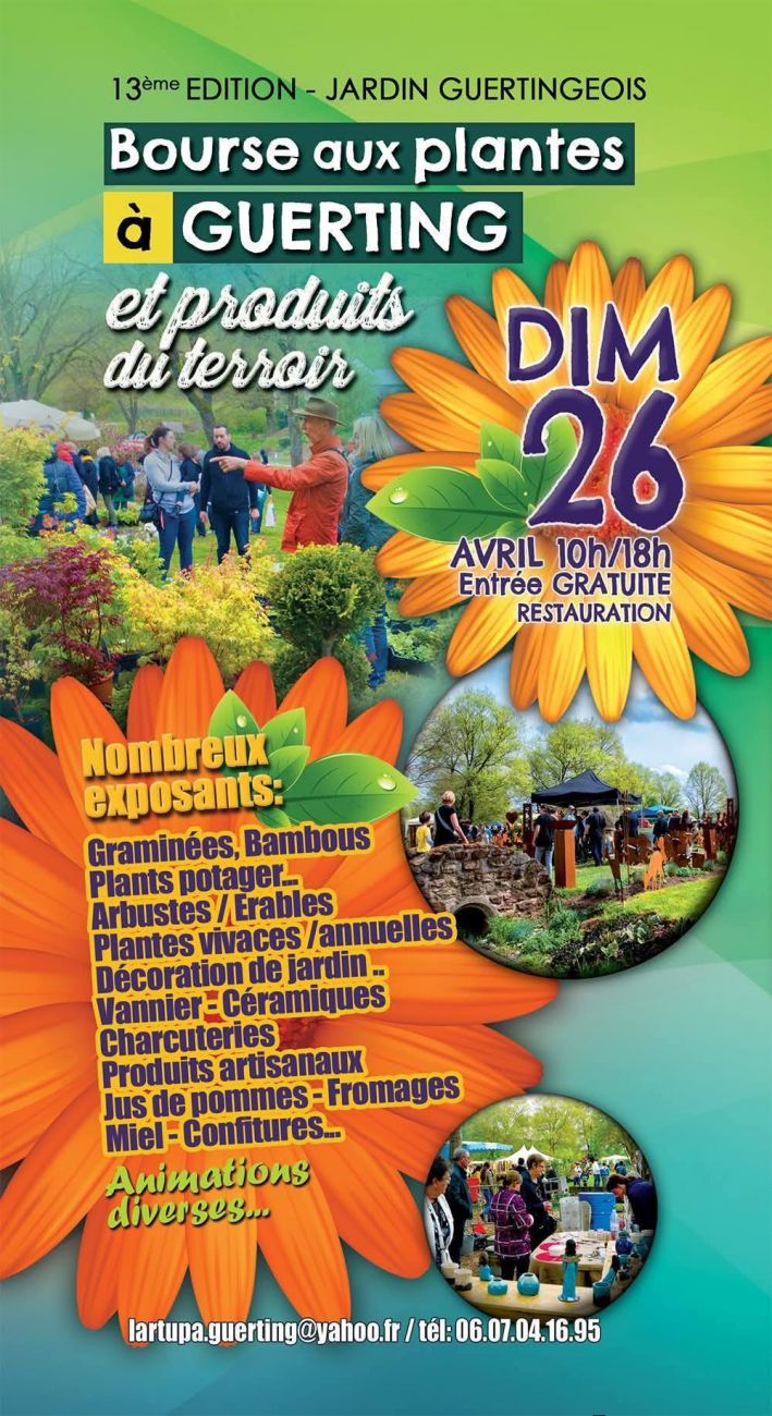 La bourse aux plantes de Guerting connait sa 13ème édition ce dimanche. De nombreux exposants et animations vous attendent au jardin guertingeois. L’entrée est gratuite et la restauration sur place.