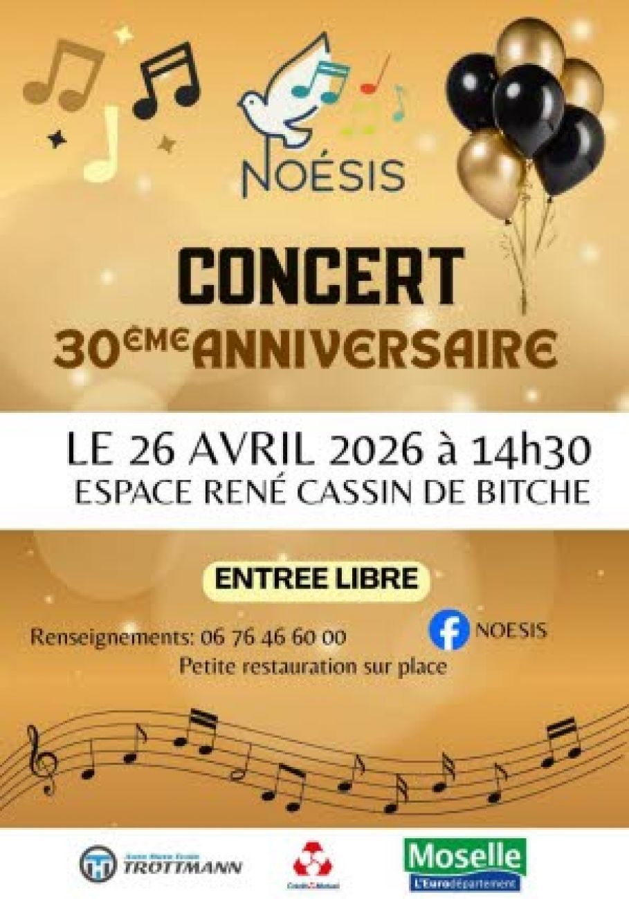 Concert du 30ème anniversaire de Noésis ce dimanche à partir de 14h30 à l’espace Cassin de Bitche. L’entrée est libre et la restauration sur place.