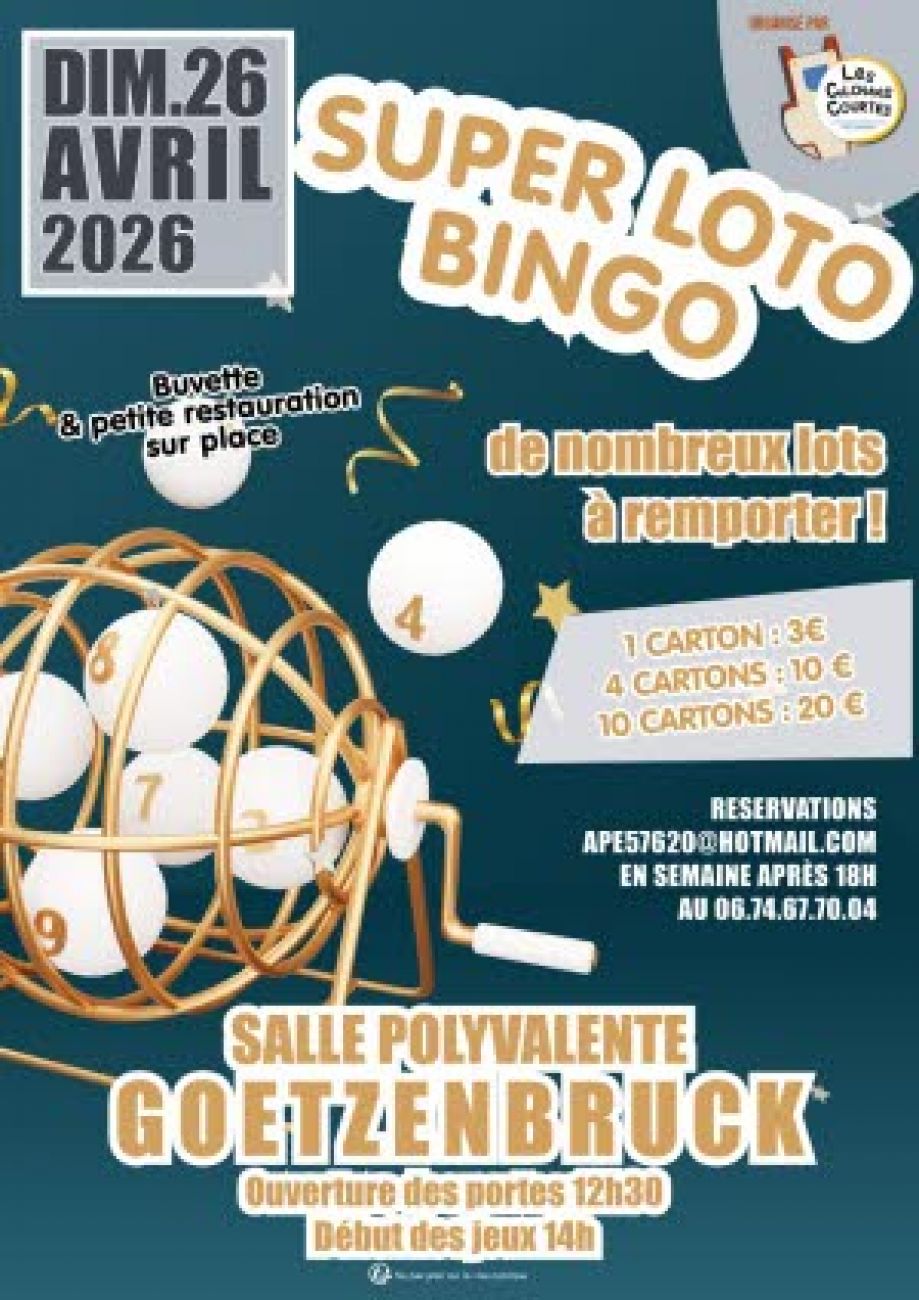 De nombreux lots seront à remporter ce dimanche dans la salle polyvalente de Goetzenbruck. Les portes seront ouvertes dès 12h30, les jeux débuteront vers 14h. Les réservations passent par email ou téléphone. Le carton est au prix de 3 euros, les 4 cartons à 10 euros et les 10 à 20 euros. Buvette et restauration sur place.