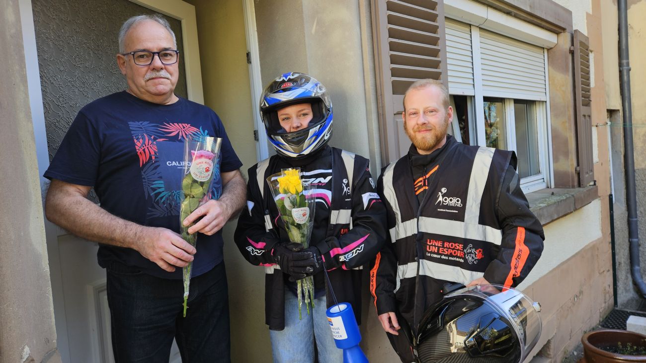 J’ai aussi perdu 4 membres de ma famille du cancer dont mon papa il y a 10 ans, 2 jours après les roses donc c’est quand même une cause qui est assez importante pour moi. Tous les ans je suis à l’arrière de la moto et je fais du porte-à-porte.
