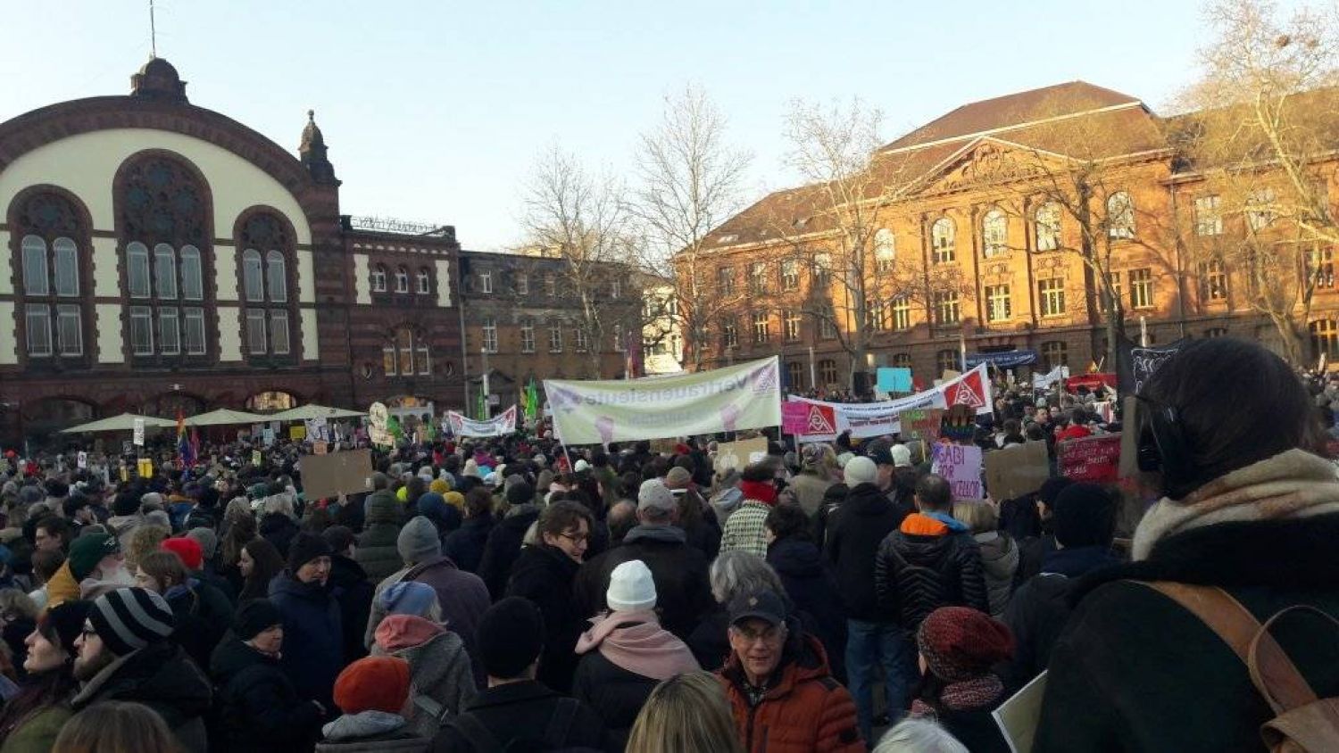Sous le slogan « Ensemble, nous disons stop – pas de vote pour les extrémistes de droite ! » Les participants se sont d'abord rassemblés sur la Landwehrplatz, puis ont défilé à travers le centre-ville de Sarrebruck.