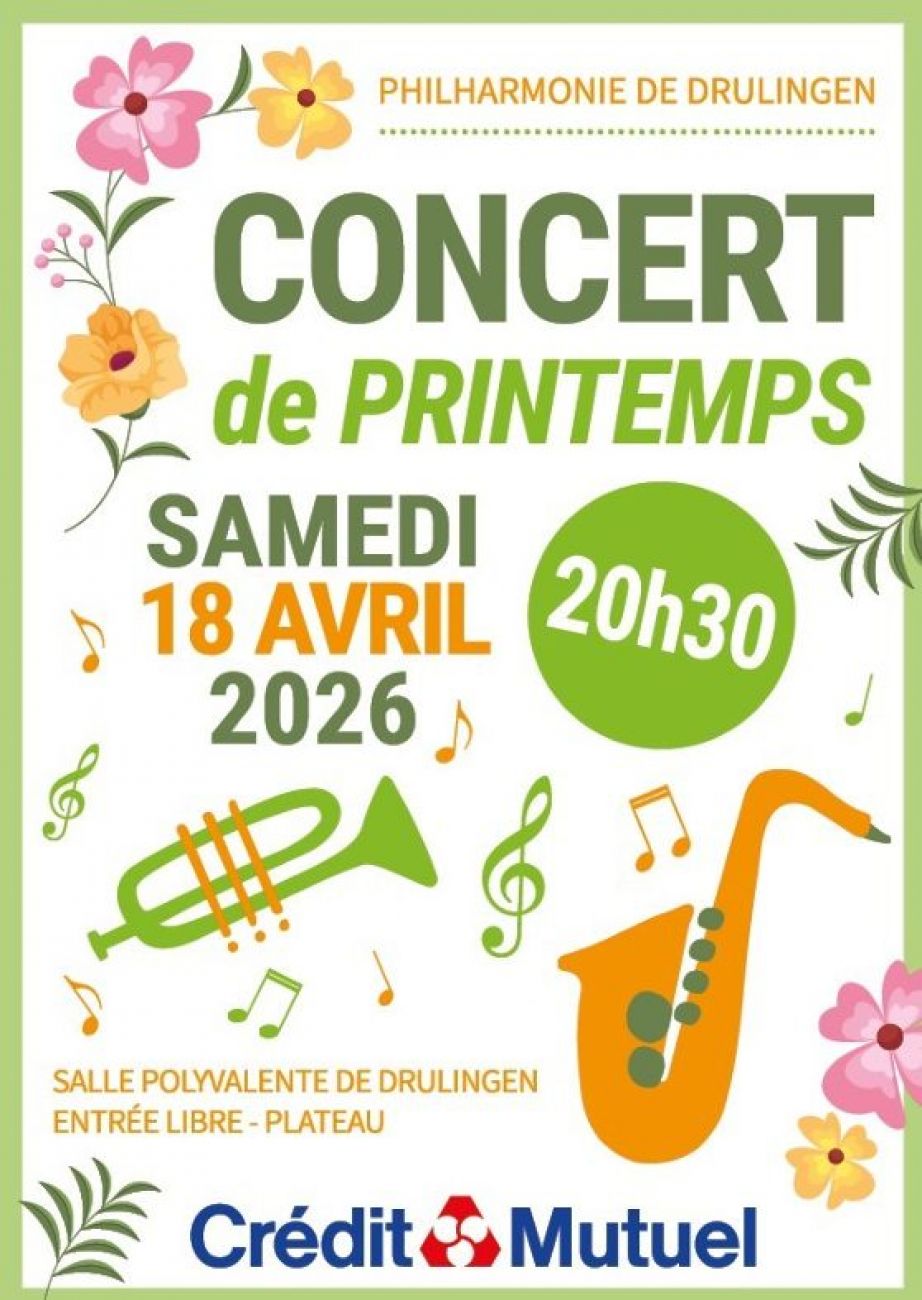 La Philharmonie et l’école de musique de Drulingen vous attendent à la salle polyvalente samedi à 20h30 pour un concert de printemps. L’entrée est libre.