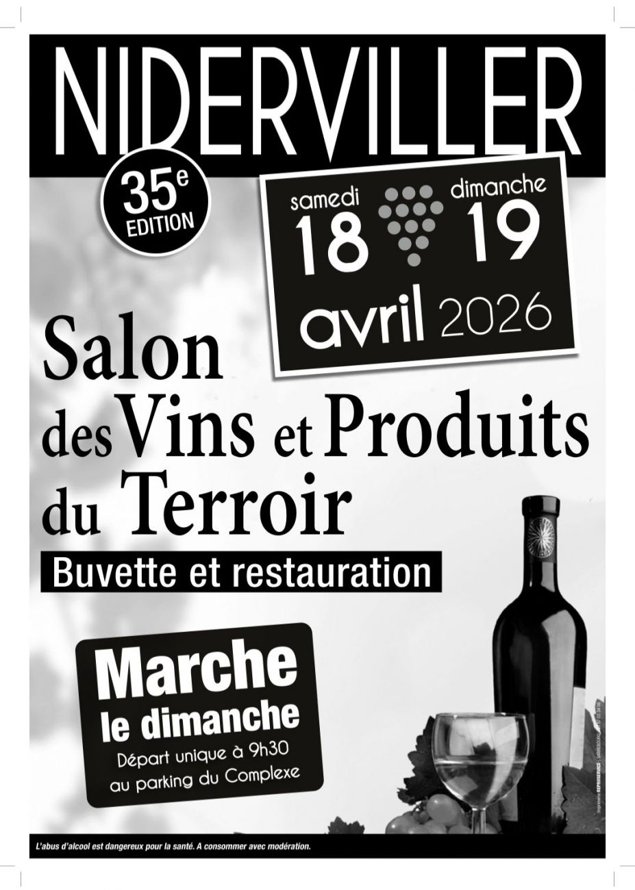 35e salon des vins et produits du terroir au complexe de salles de Niderviller samedi et dimanche de 10h à 19h. Des vignerons de diverses régions de France seront présents.