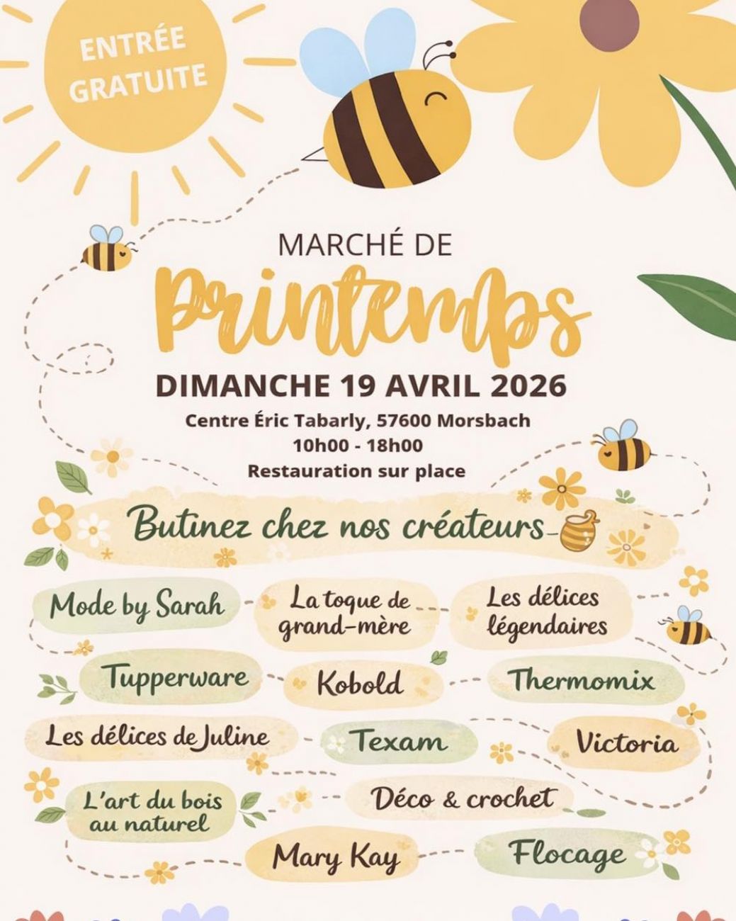 Un marché de printemps est organisé à Morsbach ce dimanche. Rendez-vous de 10h à 18h au centre Eric Tabarly.