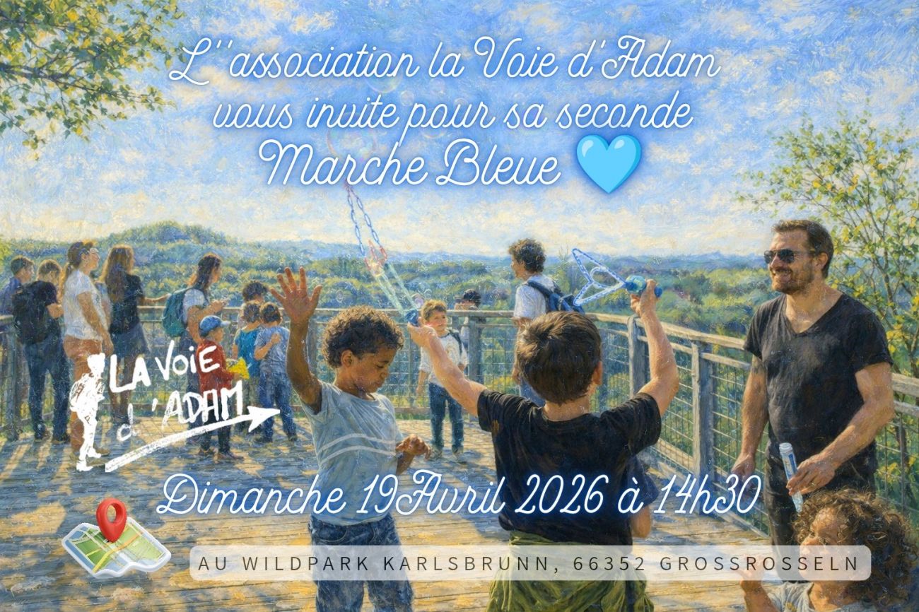 L'association La voie d'Adam vous invite à sa deuxième marche bleue. Rendez-vous de l'autre côté de la frontière, à Grande-Rosselle dimanche à 14h. Un moment de sensibilisation et de partage accessible à tous.