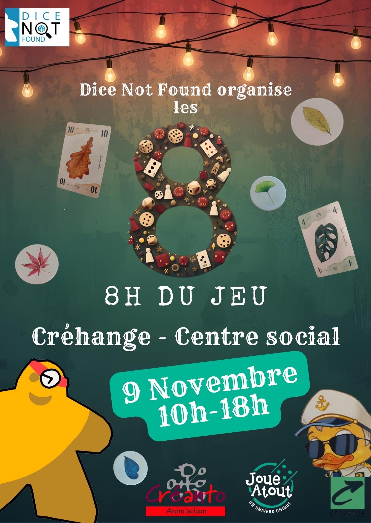 L’association Créanto Animaction, en partenariat avec Dice Not Found, organise la première édition des 8h du Jeu le dimanche 9 novembre 2025, de 10h00 à 18h00, au Centre social Créanto, situé 4 rue de Metz à Créhange.