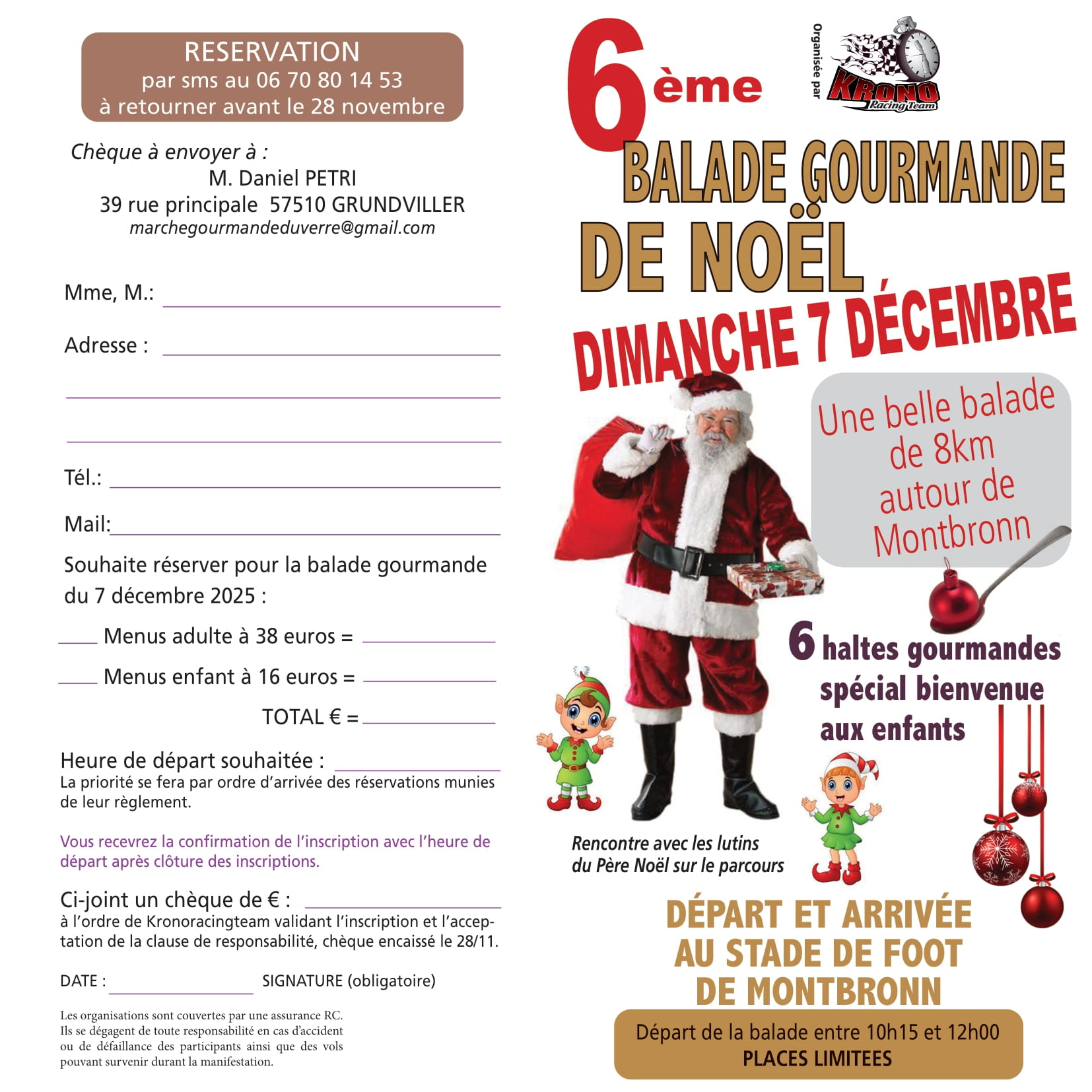 Le Krono Racing Team organise une balade gourmande de Noël de 8 km le dimanche 7 décembre autour de Montbronn.