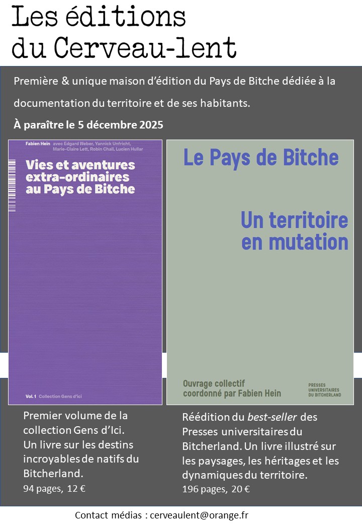 Les éditions du Cerveau-lent sont la première maison d'édition du Pays de Bitche, entièrement dédiée à la documentation du territoire et de ses habitants.