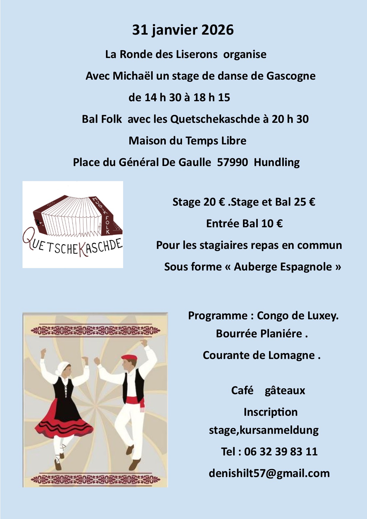 Prix : Stage 20 € ,stage et bal 25 € ,entrée bal 10 €