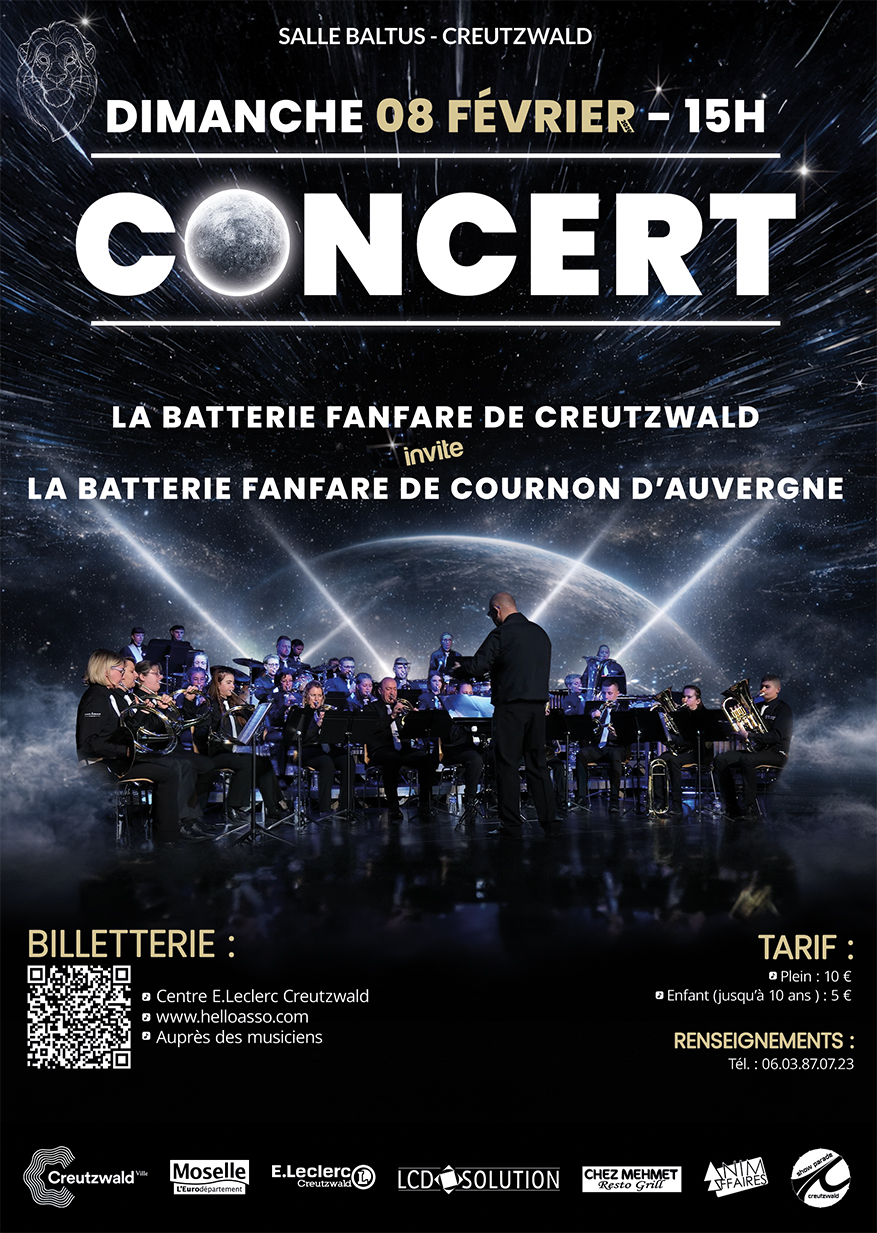 Cet événement culturel majeur de l’hiver réunira notre formation ainsi qu’une batterie-fanfare invitée de renom, celle de Cournon-d’Auvergne, reconnue au niveau national.