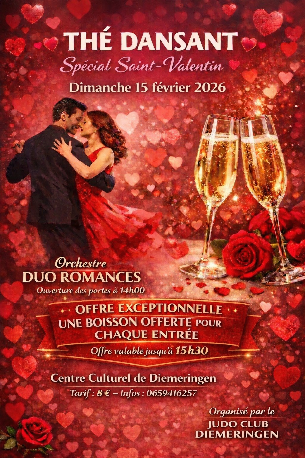 Le judo club de Diemeringen organise un thé dansant le 15 février 2026 au centre culturel de Diemeringen animé par l'orchestre Duo Romances.