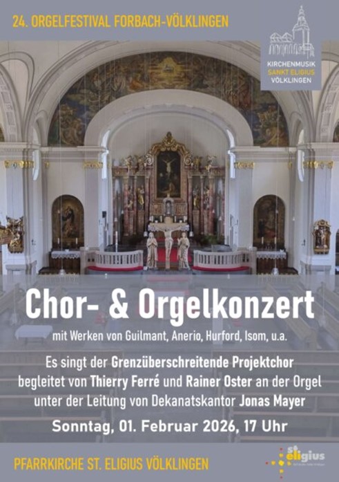 Le dimanche 1er février à 17h, aura lieu un concert avec le Choeur du Festival en l'église Sankt Eligius de Völklingen.